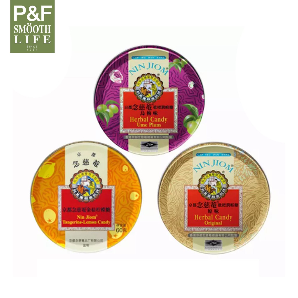 Nin Jiom Herbal Candy Original Candy 60g ลูกอมสมุนไพรเนียมฉื่ออำ ตราลูกกตัญญู รสดั้งเดิม/บ๊วยยูมิ/ส้ม-มะนาว