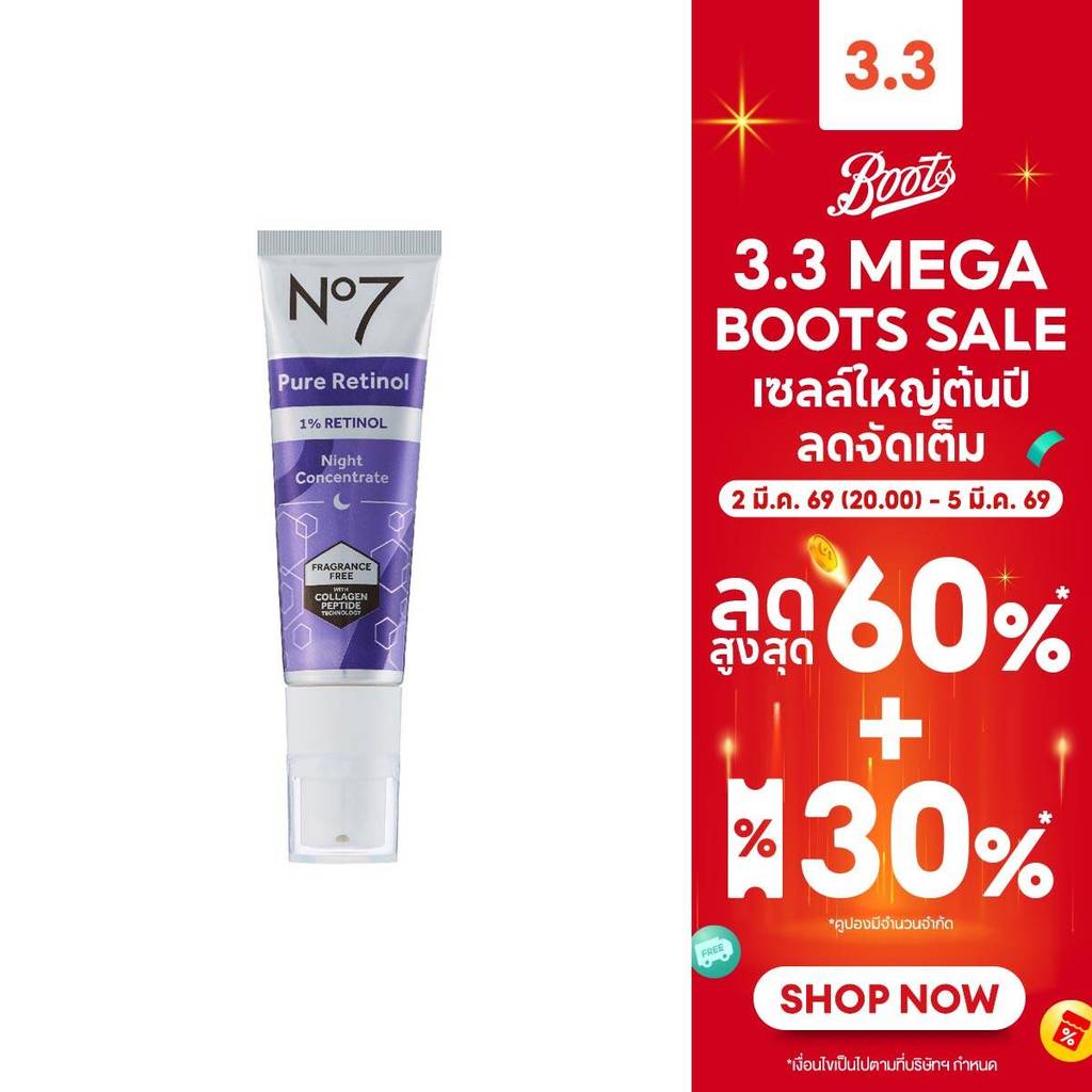 No7 Pure Retinol 1% Retinol Night Concentrate Serum 30 ML. นัมเบอร์เซเว่น เรตินอล 1% เซรั่ม 30 มล.