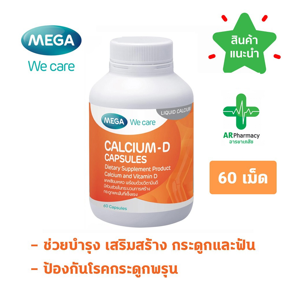Mega Calcium D 60 แคปซูล เสริมสร้างกระดูกและฟัน ป้องกันโรคกระดูกพรุน