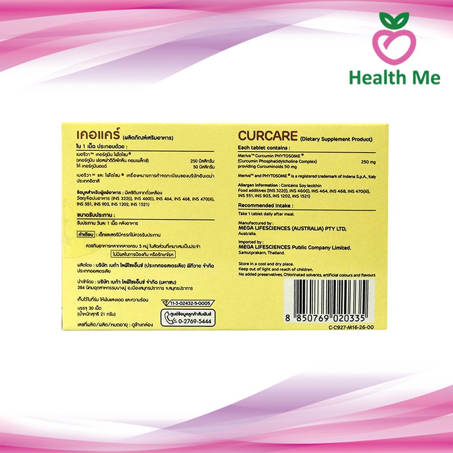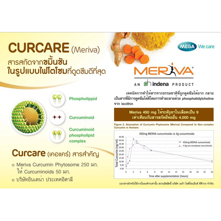 Mega We Care Curcare Phytosome ชมิ้นชัน 30 เม็ด เคอแคร์ ขับลม ลดท้องอืด