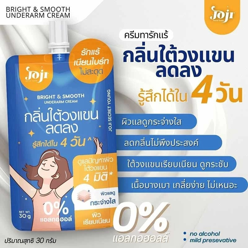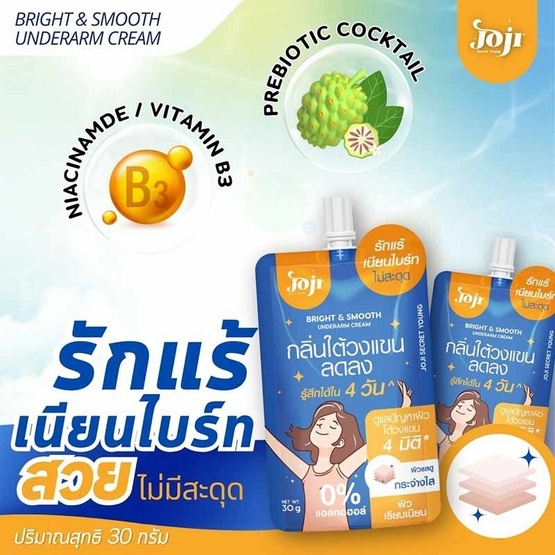 (1 ซอง) Joji Bright & Smooth Underarm cream (สีน้ำเงิน) บำรุงผิว กลิ่นใต้วงแขนลดลง (ปริมาณ 30 กรัม)