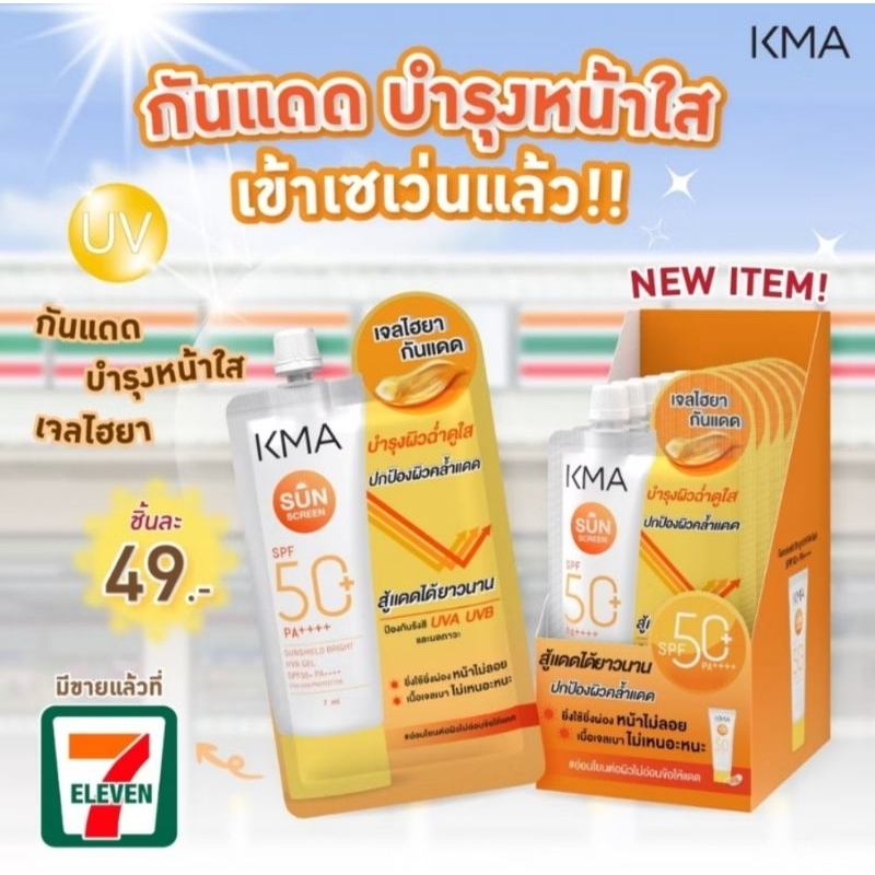 ส่งฟรี/มีไลฟ์ (1ซอง) KMA เจลไฮยา กันแดดหน้าใส SPF50+PA+ +++ Sunshield Bright HYA Ge 7 มล