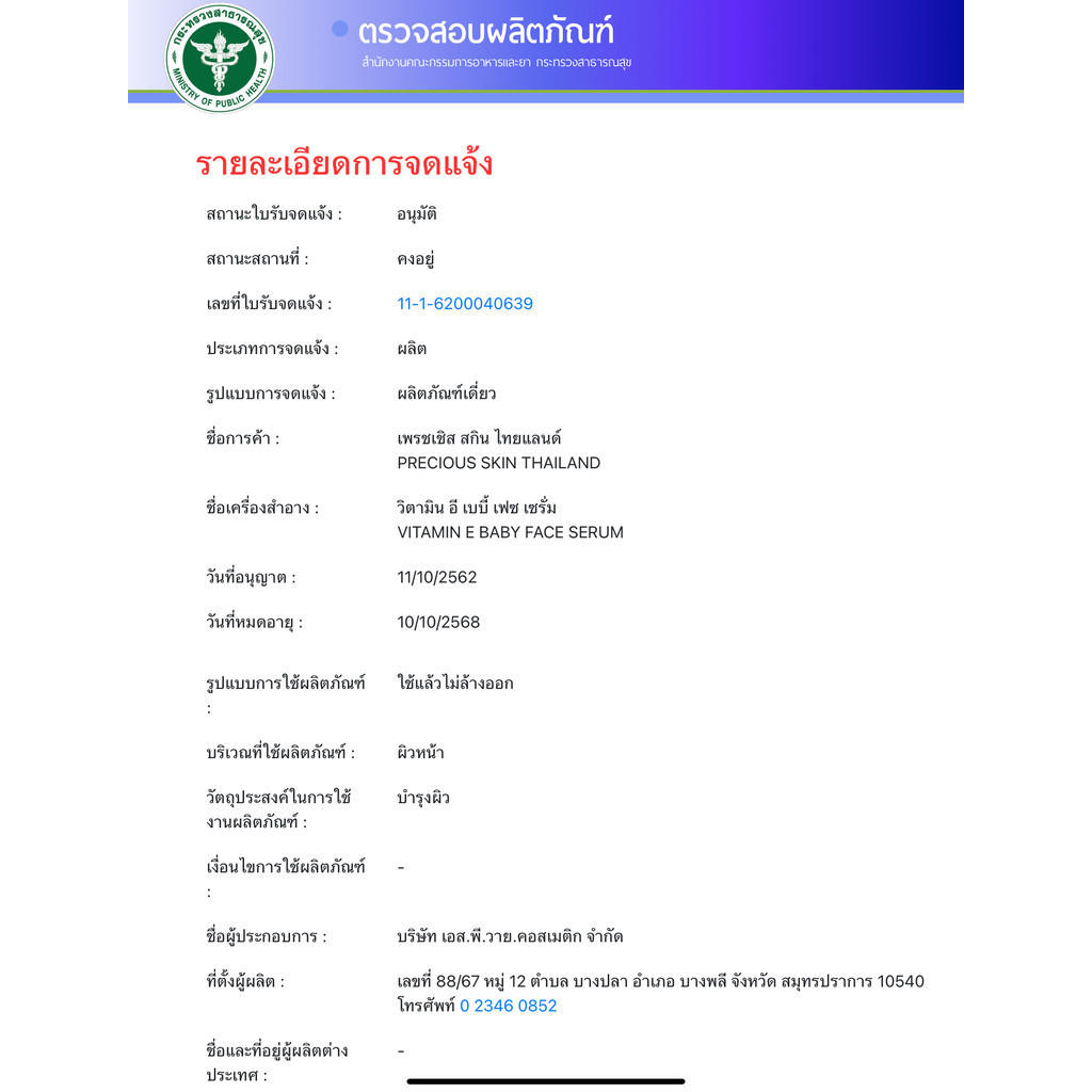 (1ชิ้น) Vitamin E Baby Face Serum 30ml by Precious Skin