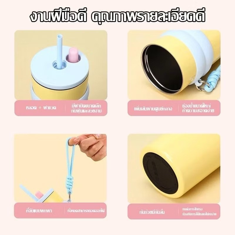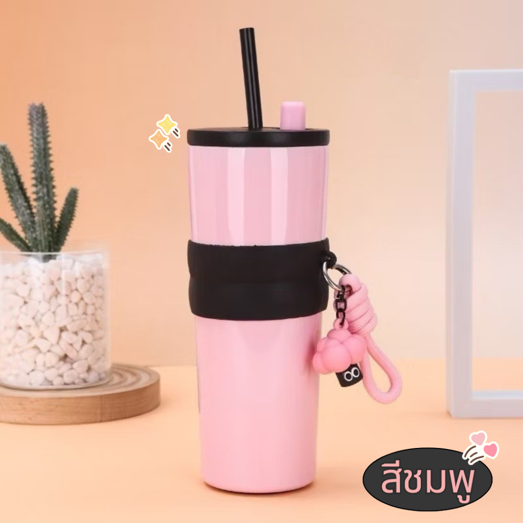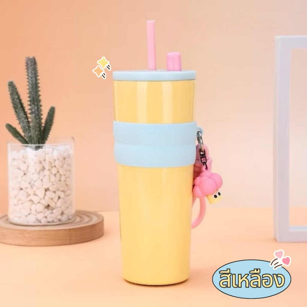 แก้วสูญญากาศเก็บอุณหภูมิ 710ML พร้อมหูจับพกพาและหลอด 316 สแตนเลส