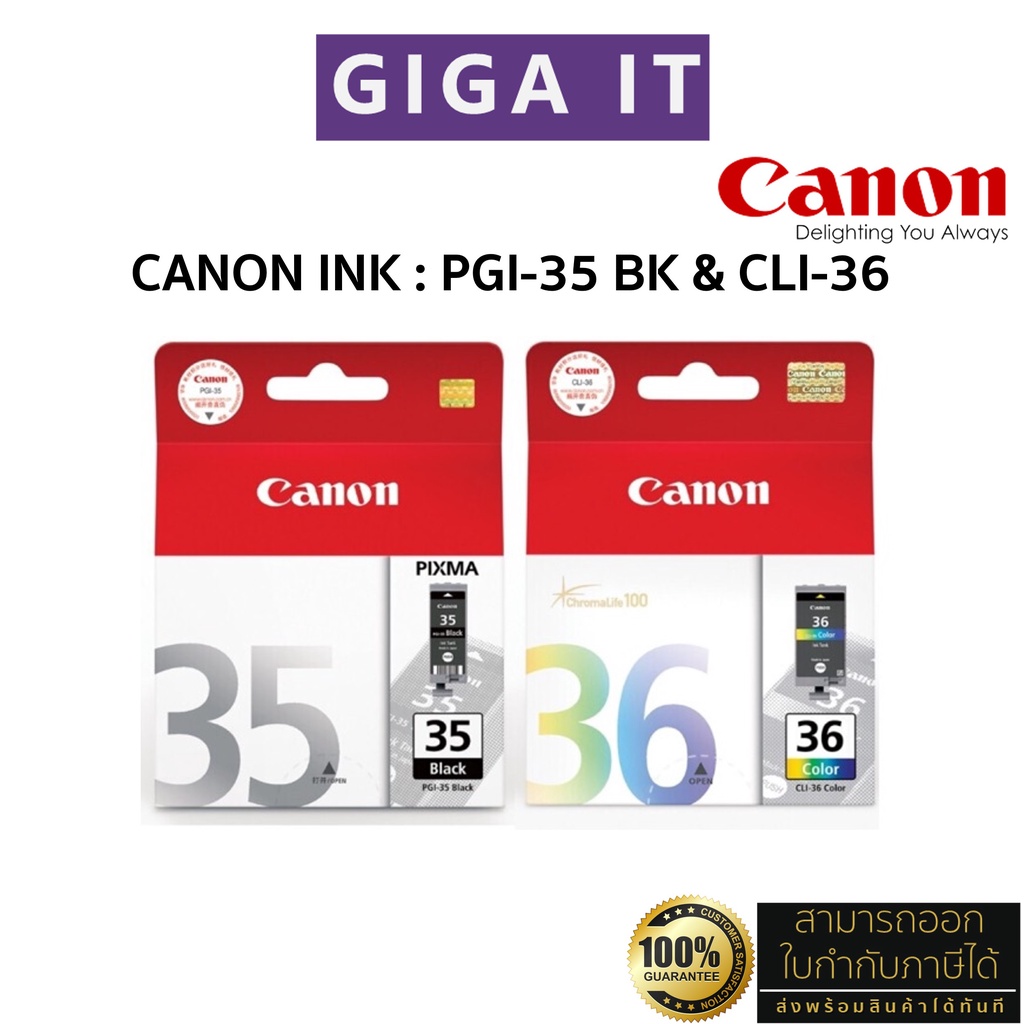 หมึกพิมพ์ Canon PGI-35 BK (ดำ) & CLI-36 CLI (สี) หมึกตลับแท้ 100% มีกล่องแท้, ประกันศูนย์แคนนอน 6 เดือน