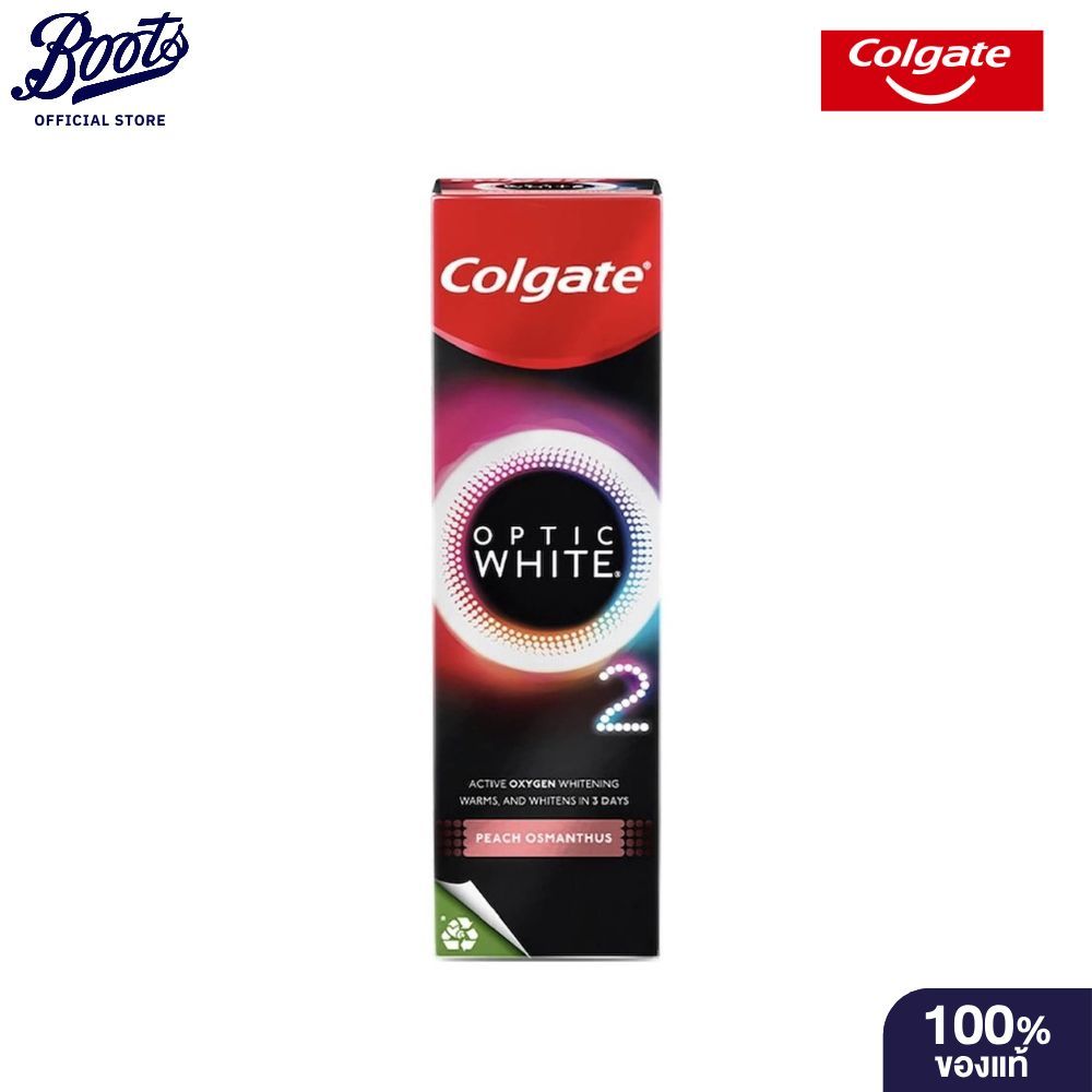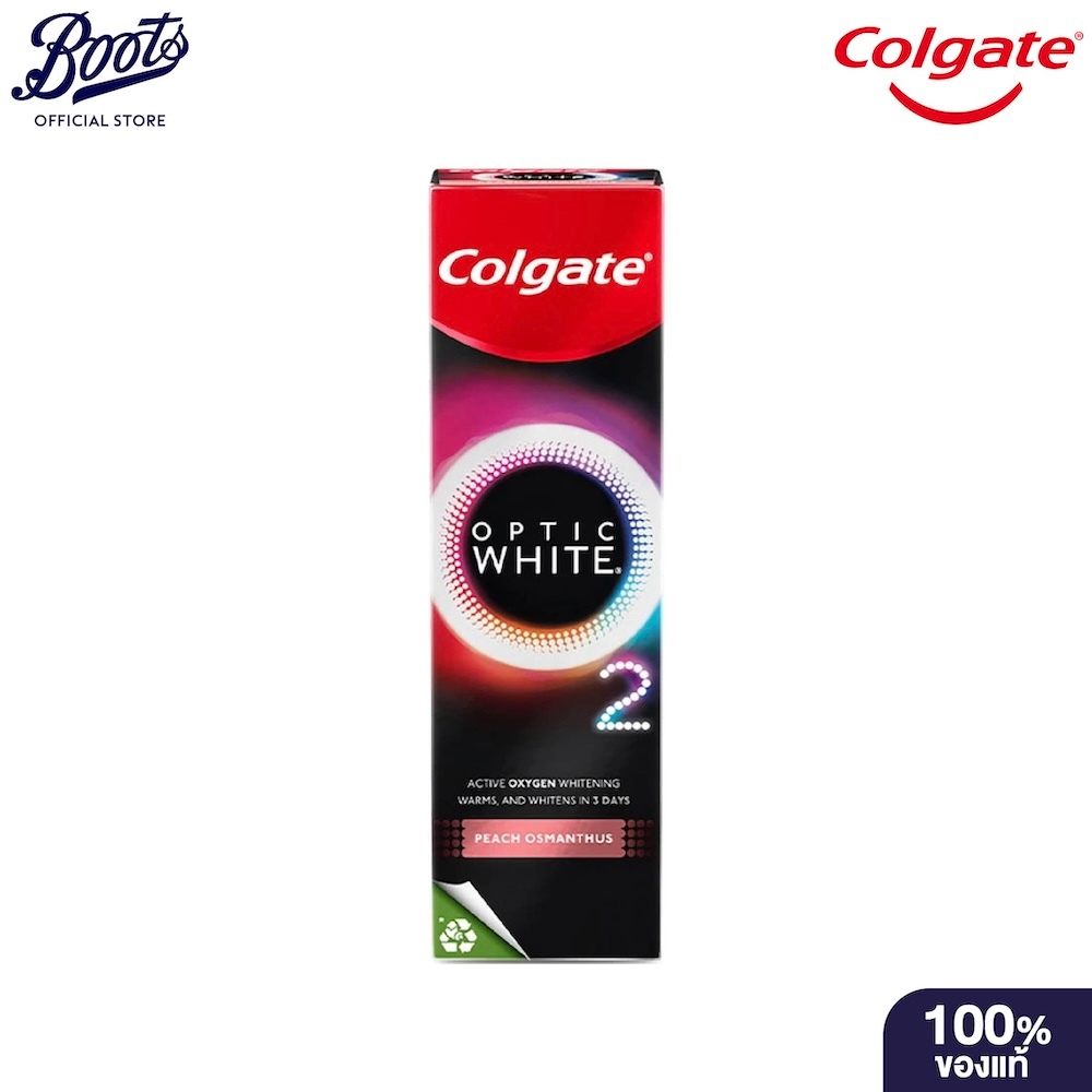 Colgate Optic White O2 Peach 85G คอลเกต ยาสีฟัน อ๊อพติค ไวท์ โอทู พีช ออสแมนทัส 85 ก