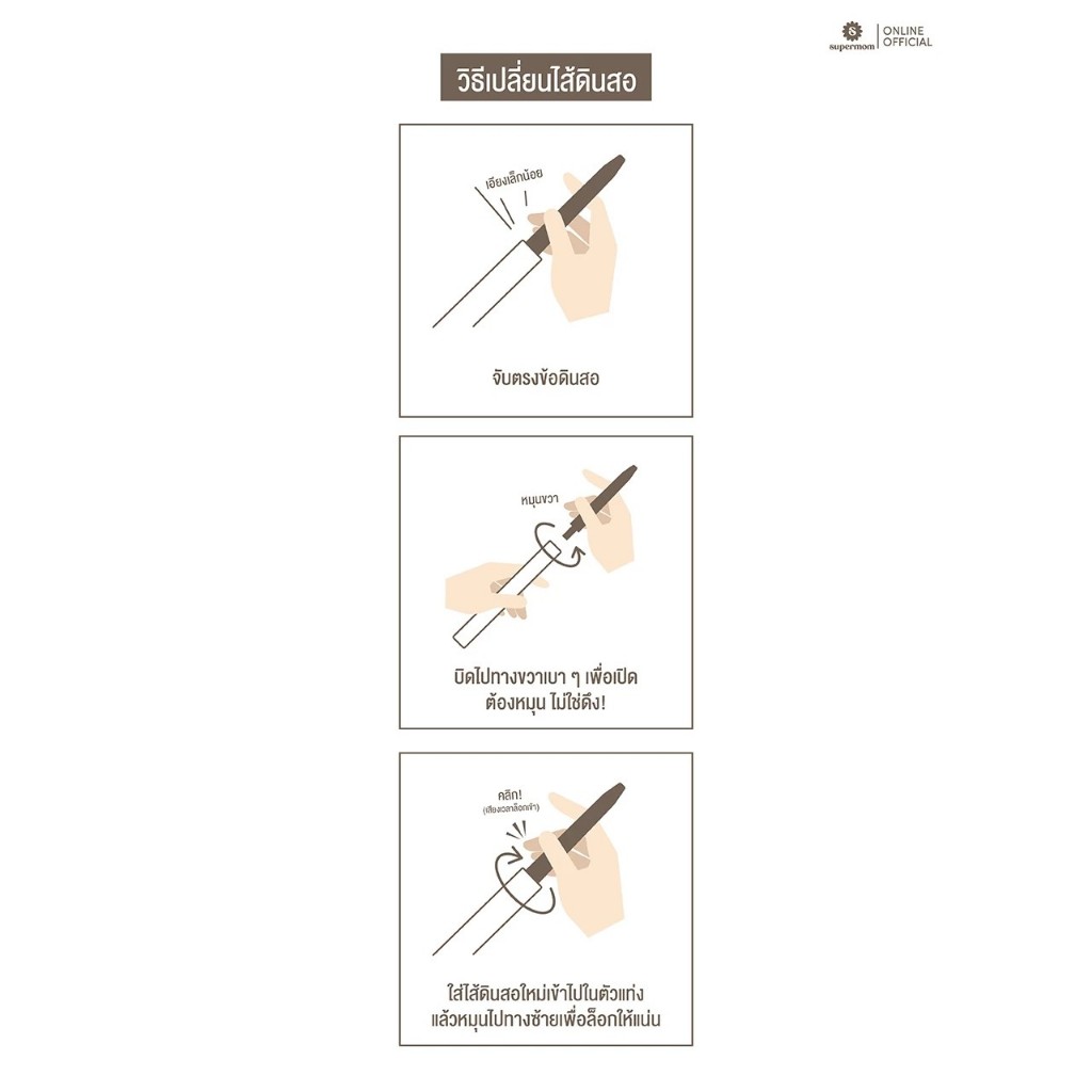 SUPERMOM รุ่นใหม่มีรีฟิล 2IN1 SLIM EYEBROW PENCIL ดินสอเขียนคิ้ว 1.0 mm ปริมาณ 0.03 กรัม