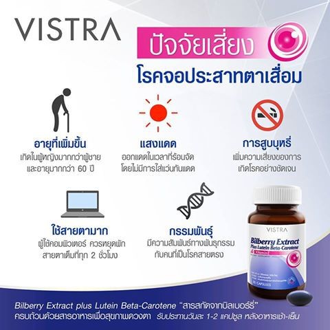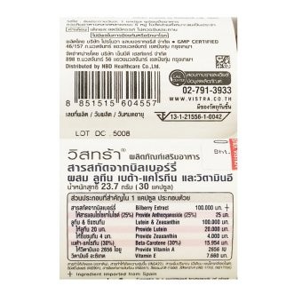 Vistra Bilberry Extract Plus Lutein Beta-Carotene & Vitamin E 30 แคปซูล