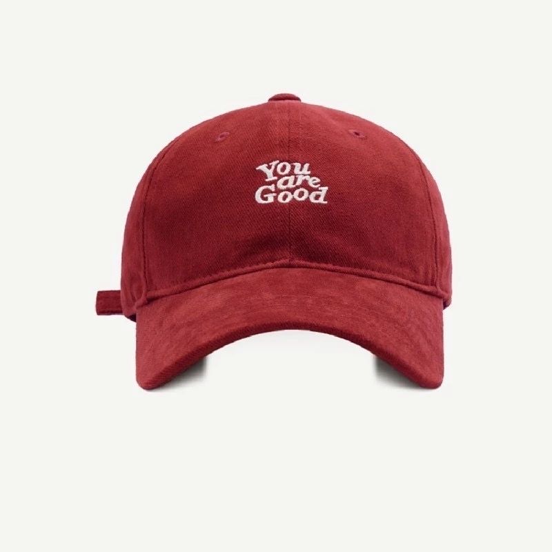 หมวกทรงเบสบอล หมวกแก๊ปผ้าฝ้าย ปักลายภาษาอังกฤษ สไตล์เกาหลี สามารถปรับขนาดได้ สีน้ำตาล แดง