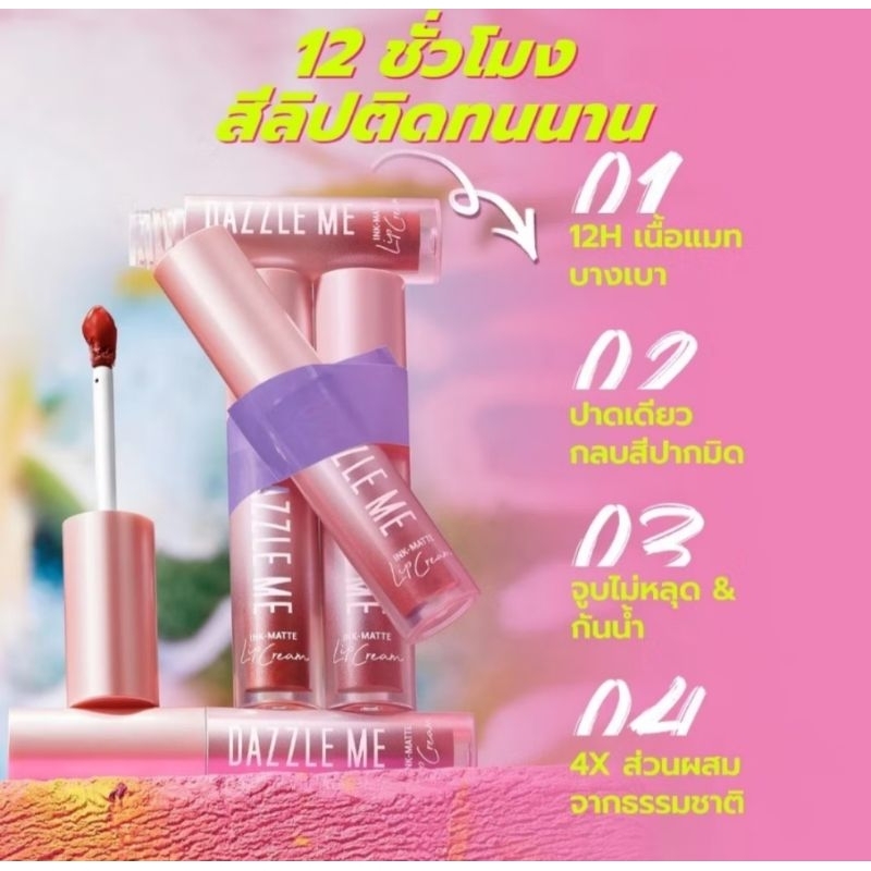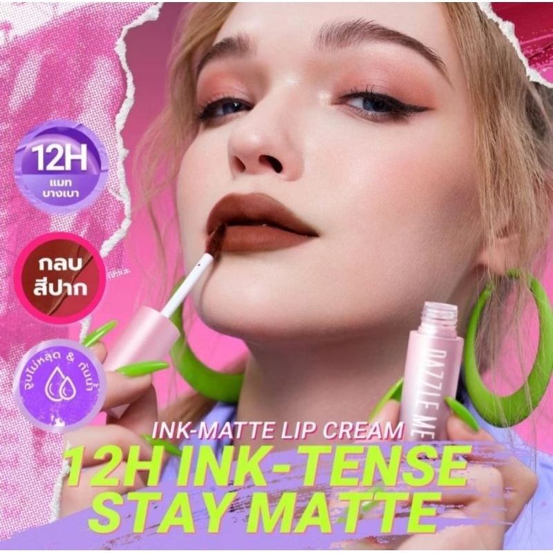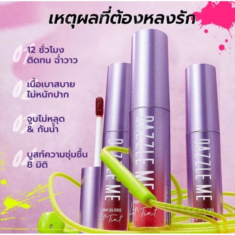 ส่งฟรี/มีไลฟ์ (1ชิ้น)ลิป Dazzle Me Ink-Gloss Lip TintInk-Matte Lip Cream ลิปกลอสหินท์ ปากฉ่าวาว ลิปเนื้อครีม
