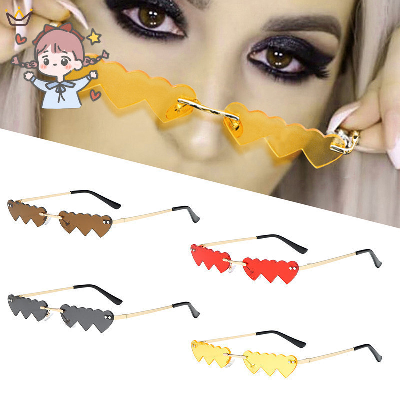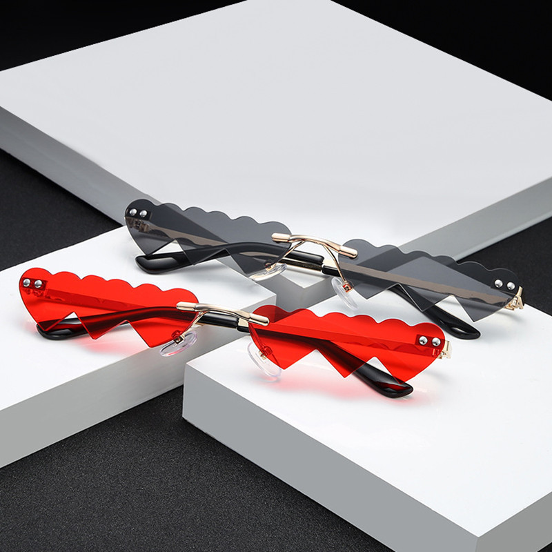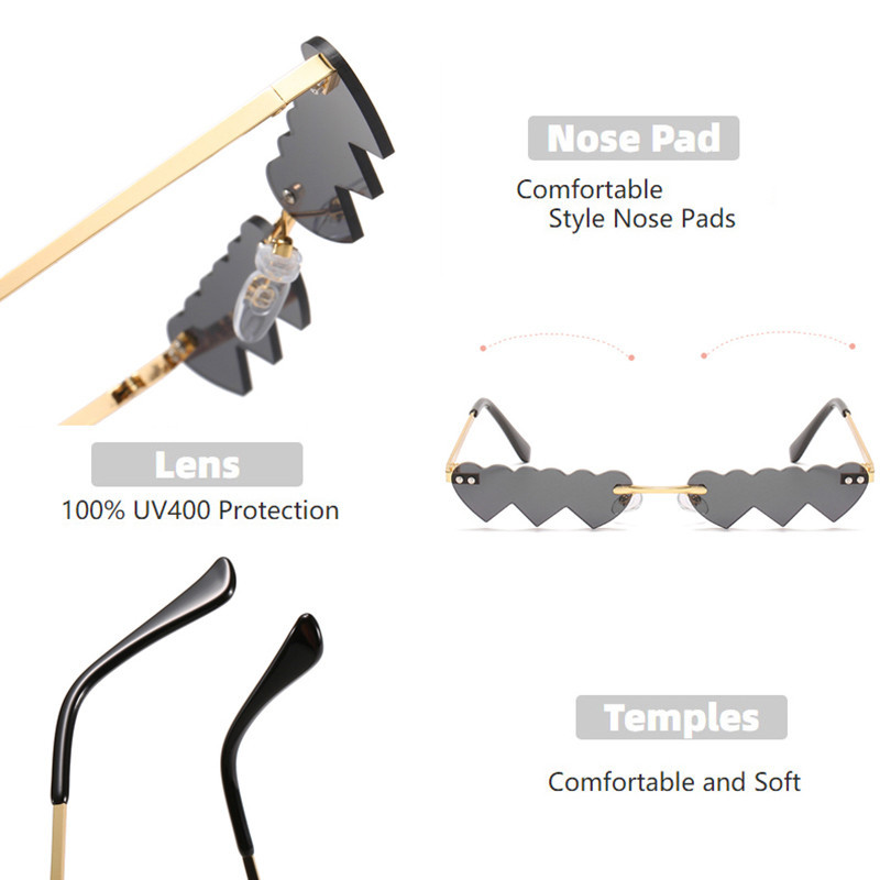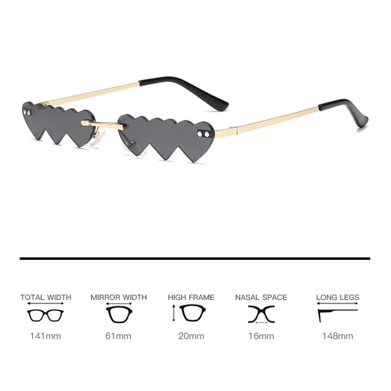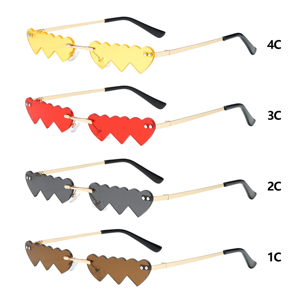 สีแดงสีชมพูหัวใจแว่นตากันแดดผู้หญิงแฟชั่นสไตล์วินเทจดวงอาทิตย์แว่นตาหญิงโลหะไม่มีขอบ