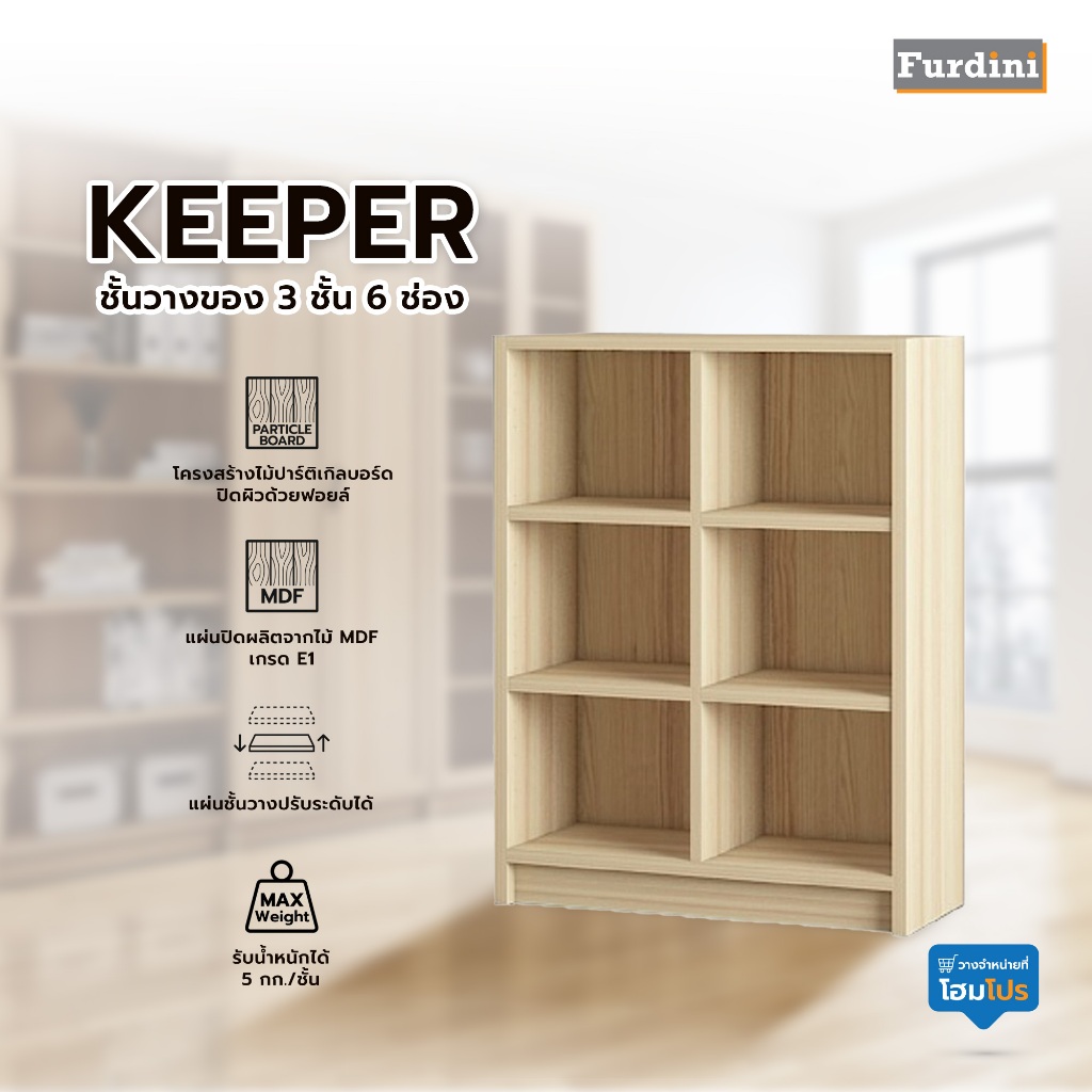 FURDINI ชั้นวางของ 3 ชั้น 6 ช่อง KEEPER สี PINE OAK จัดส่งโดย HomePro