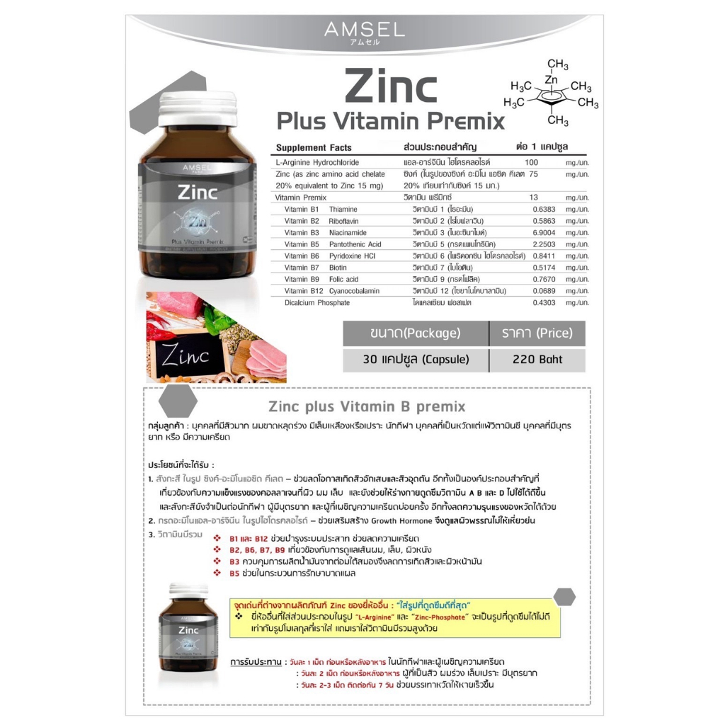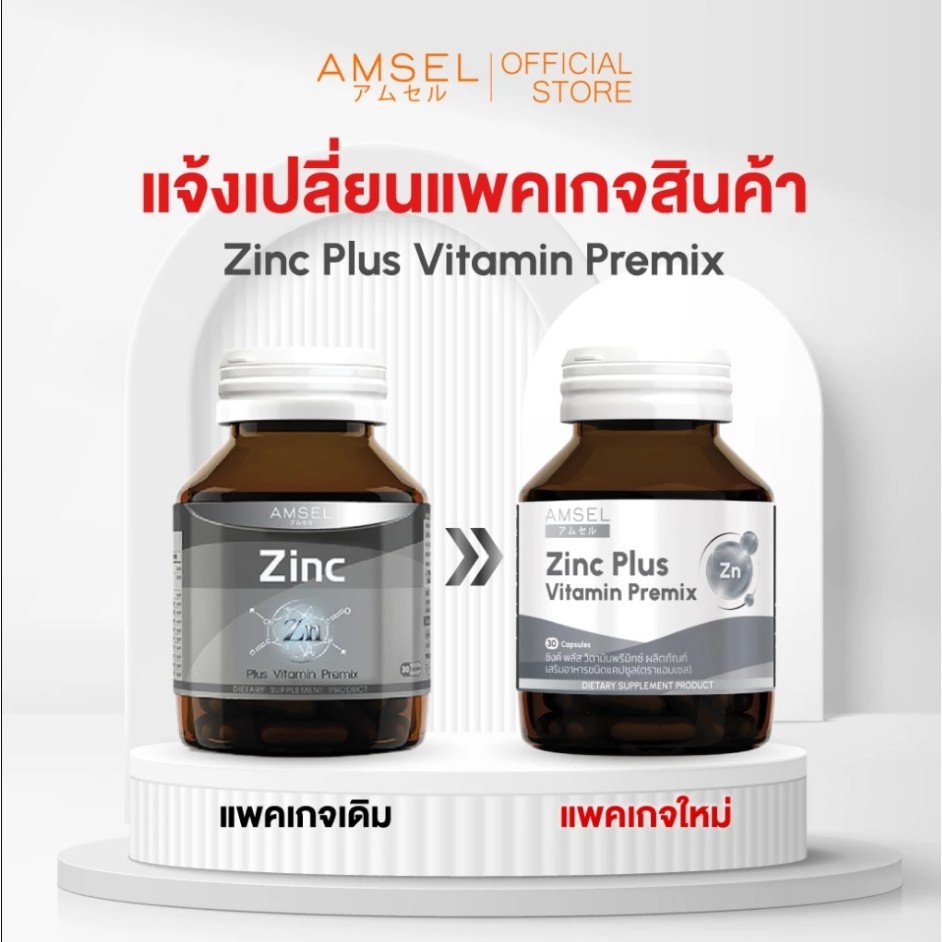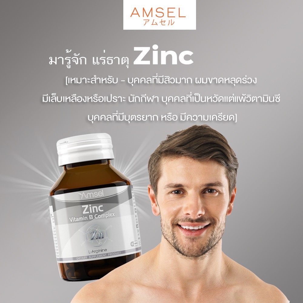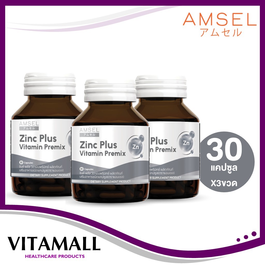 3ขวดคุ้มกว่า Amsel Zinc 30 เม็ด ลดความมันบนใบหน้า ลดโอกาสเกิดสิวอักเสบและสิวอุดตัน
