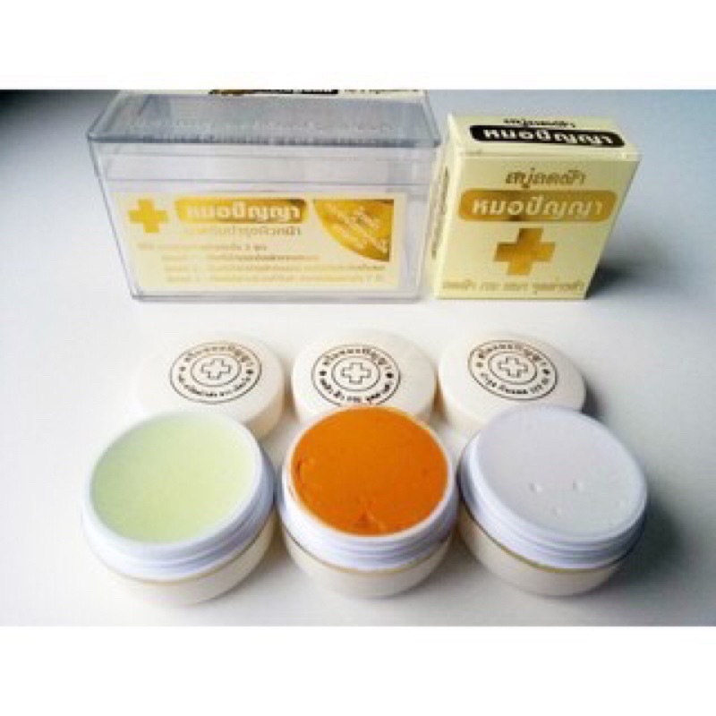 ของแท้100%/พร้อมส่ง ครีมหมอปัญญา แบบกล่อง แก้ฝ้าสิวกระ กันแดด+ขมิ้น+เจล