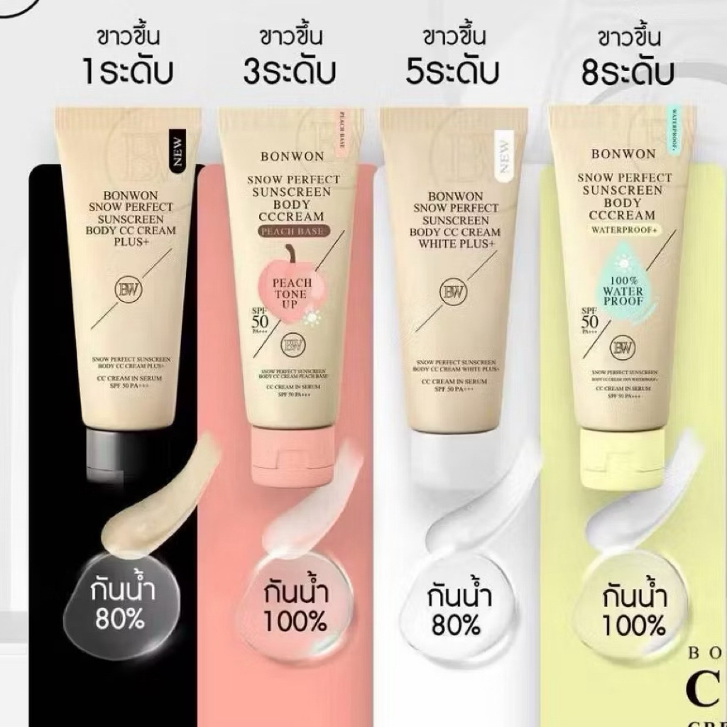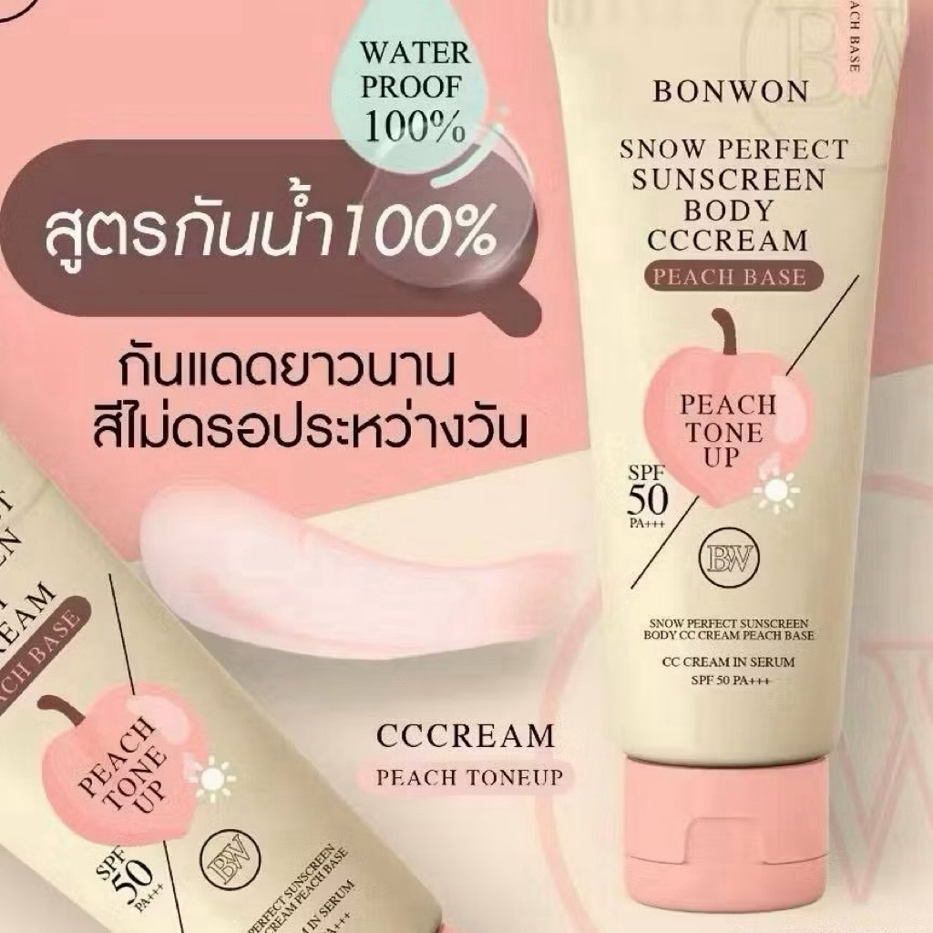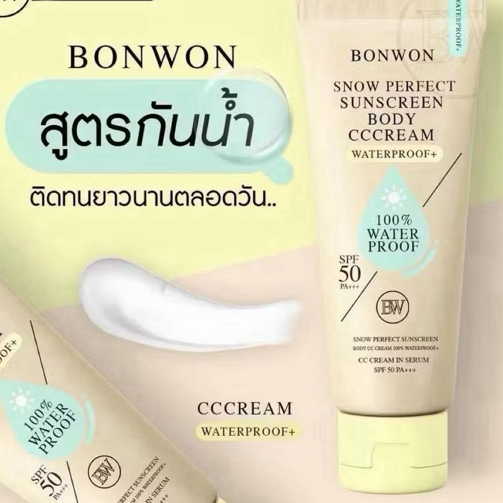 ส่งฟรี/มีไลฟ์ (หลอด)บอนวอน สโนว์ เพอเฟค ซันสกรีน บอดี้ ซีซี ครีม พลัส/ไวท์พลัส/วอเตอร์พรูฟ พลัส SPF50PA+++ BONWON SNOW