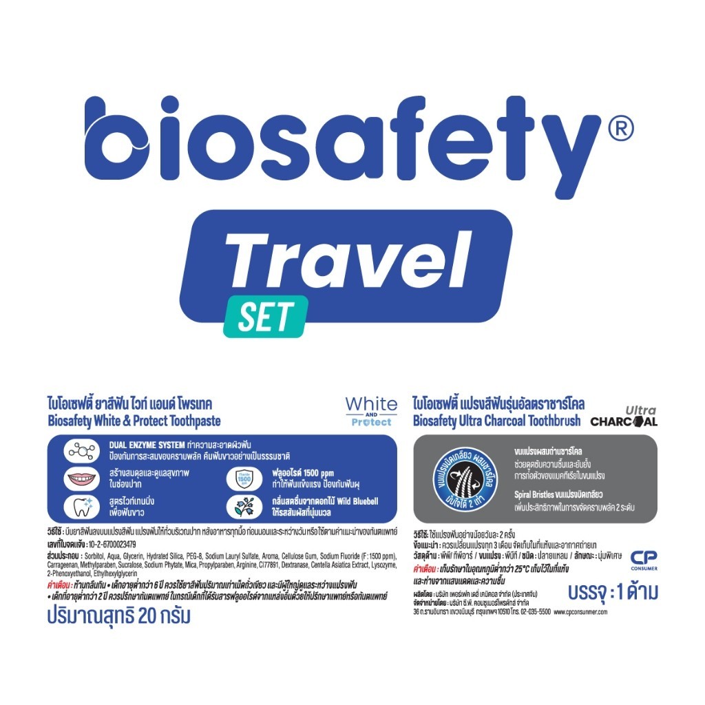 🔥แท้/ดีลสุดคุ้ม/ไลฟ์ทุกวัน🔥(คละสี) Biosafety Travel Set Ultra Charcoal แปรงสีฟัน+ยาสีฟัน ขนาด 20 กรัม
