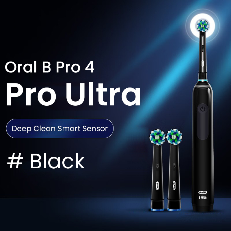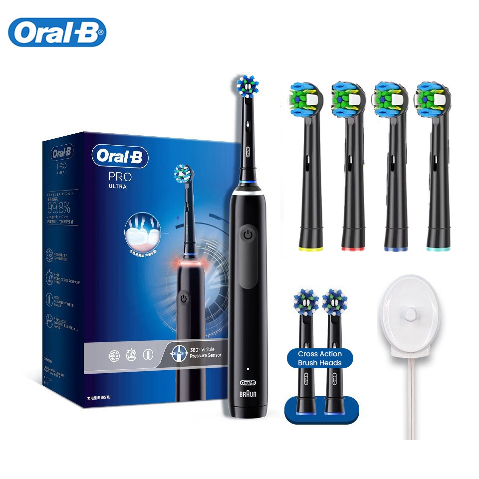 แปรงสีฟันไฟฟ้า Oral B Pro4 Ultra Cross Action Pressure Sensing 4 โหมดพร้อมตัวจับเวลา 2 นาทีพร้อมรีฟิลหัวแปรง 3 อัน