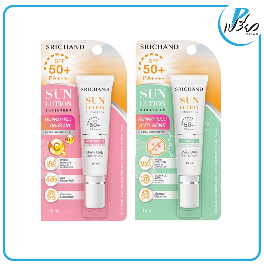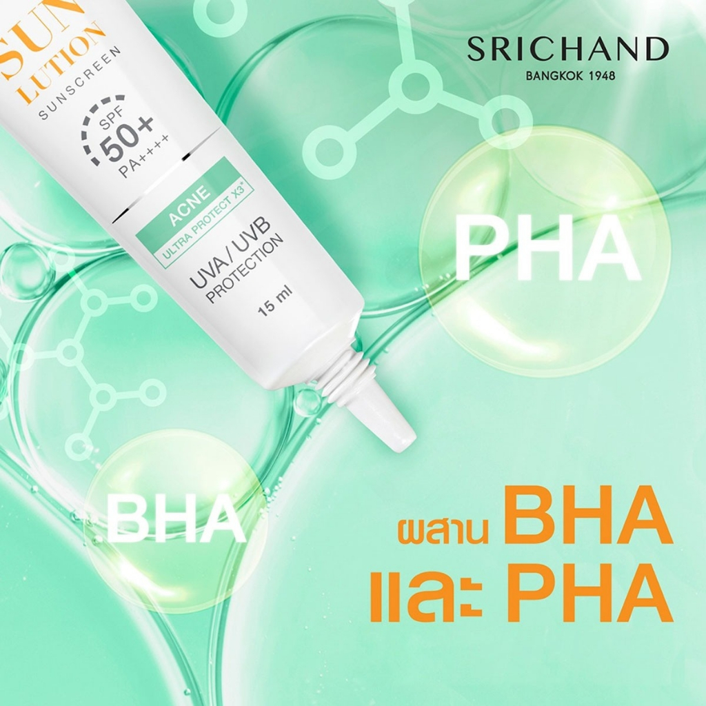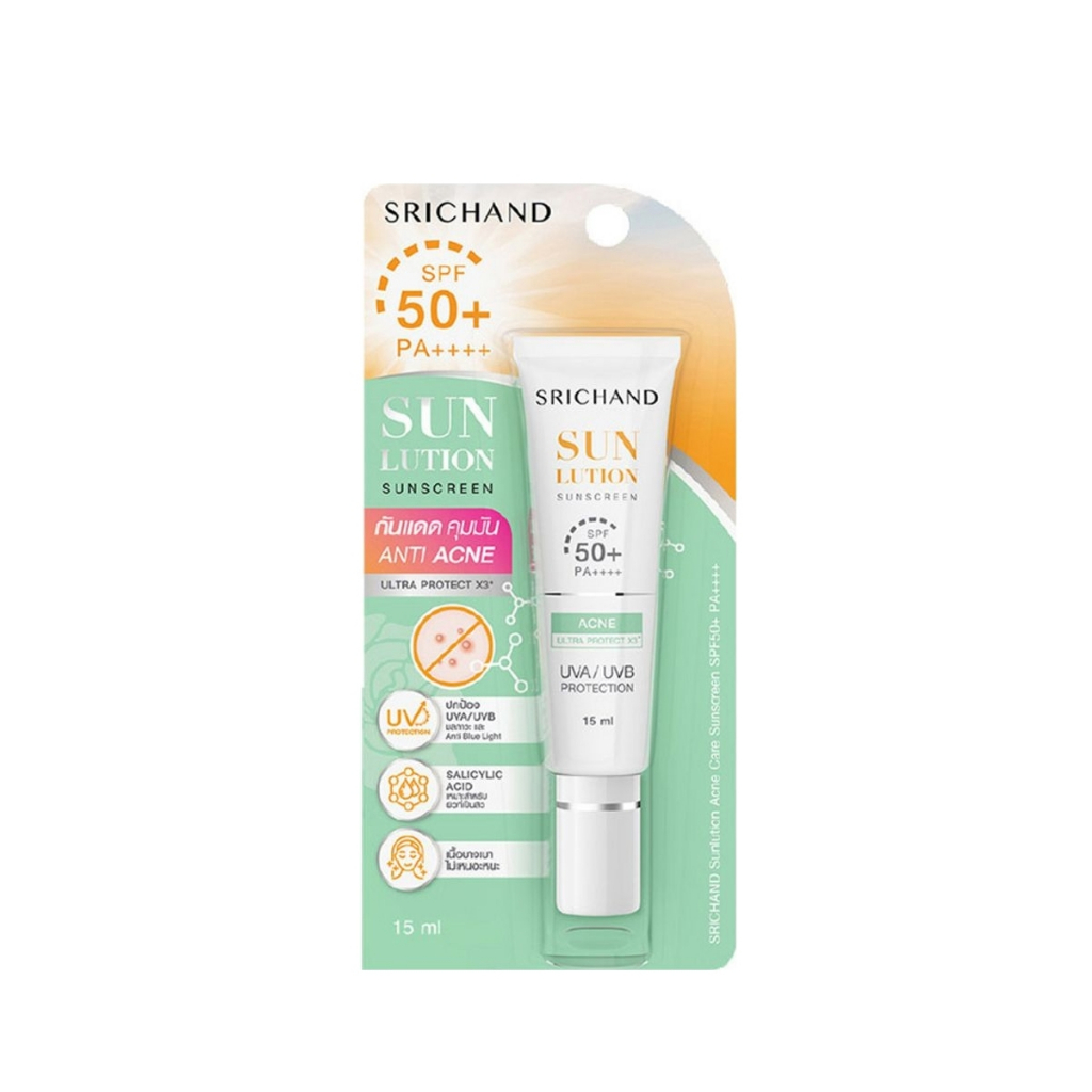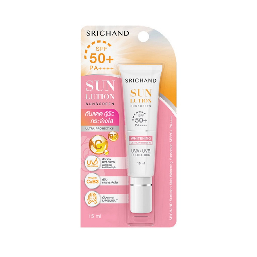SRICHAND ศรีจันทร์ ซันลูชั่น ซันสกีน SPF50+ PA++++ 15 มล. Srichand Sunlution Sunscreen 15 ml.(มีให้เลือก 2 สูตร)