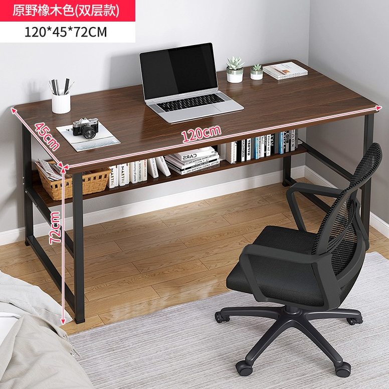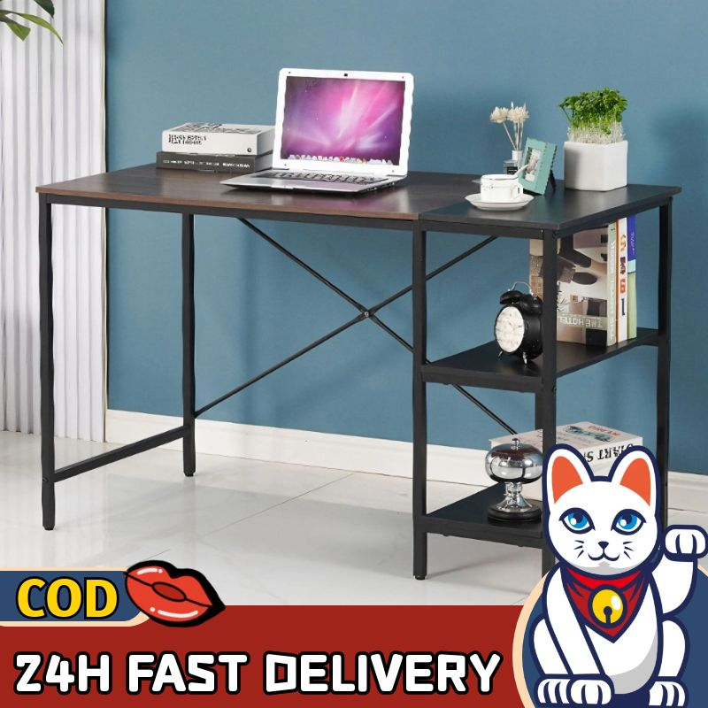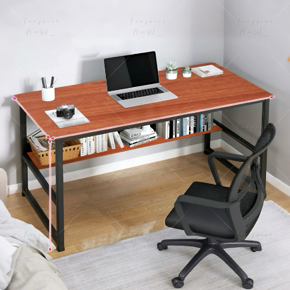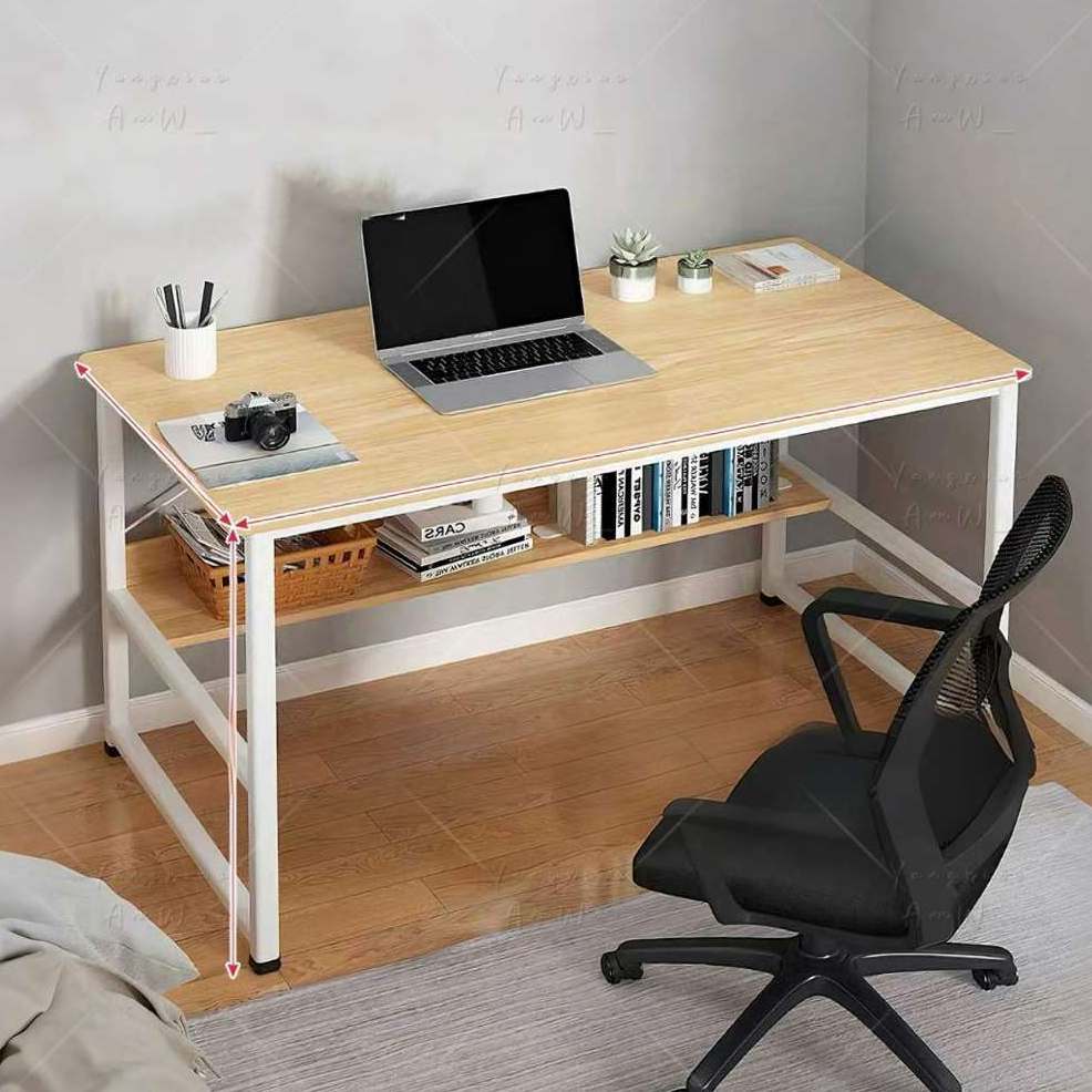 Lucky😸มีพร้อมส่ง โต๊ะทำงานไม้พร้อมชั้นวางของ ท็อปไม้อัดMDF