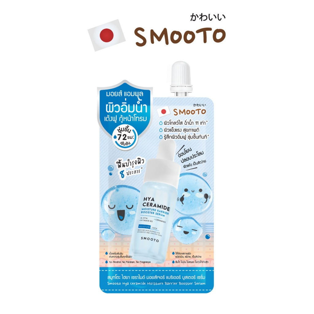 (1 กล่อง X6 ซอง) SMOOTO สมูทโตะ ไฮยา เซราไมด์ มอยส์เจอร์ แบริเออร์ บูสเตอร์ เซรั่ม (10 กรัม / ซอง)