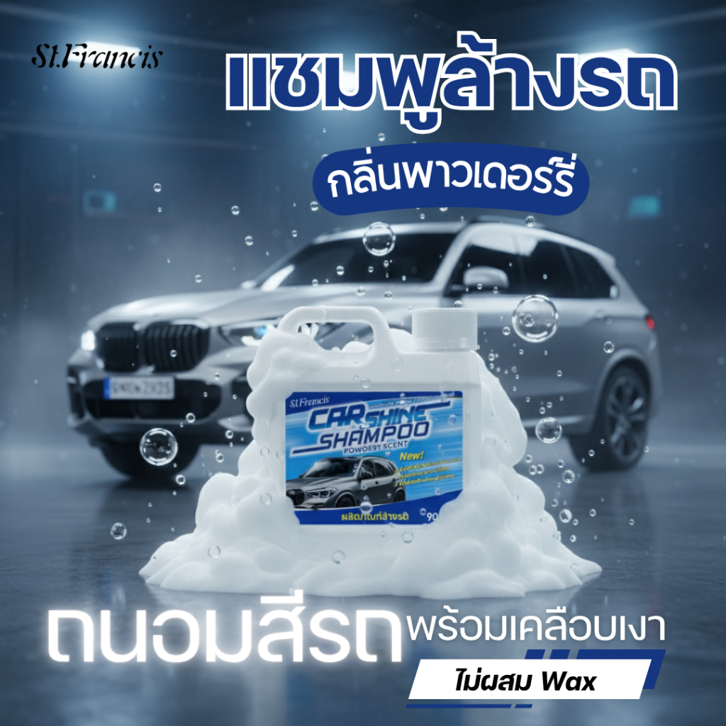 ST.FRANCIS แชมพูล้างรถ กลิ่นพาวเดอร์รี่ 900ml. พร้อมเคลือบเงา & ปกป้องสีรถ ให้ดูใหม่อยู่เสมอ