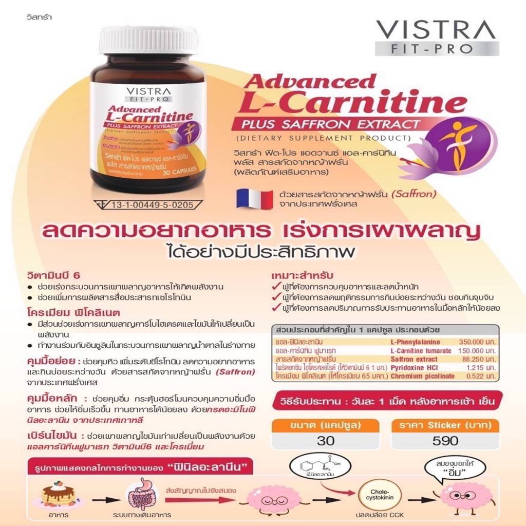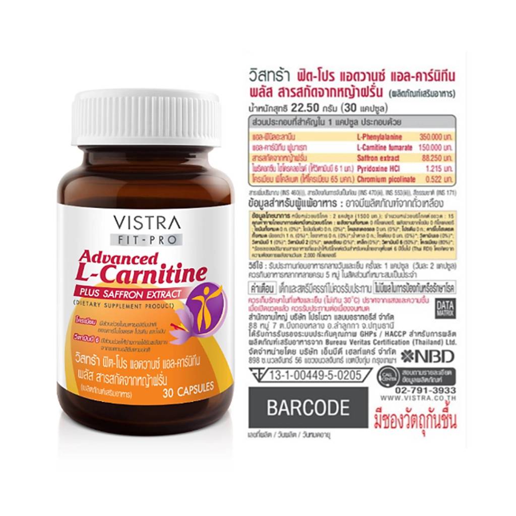 VISTRA FIT-PRO ADVANCED L-CARNITINE PLUS SAFFRON EXTRACT 30 แคปซูล
