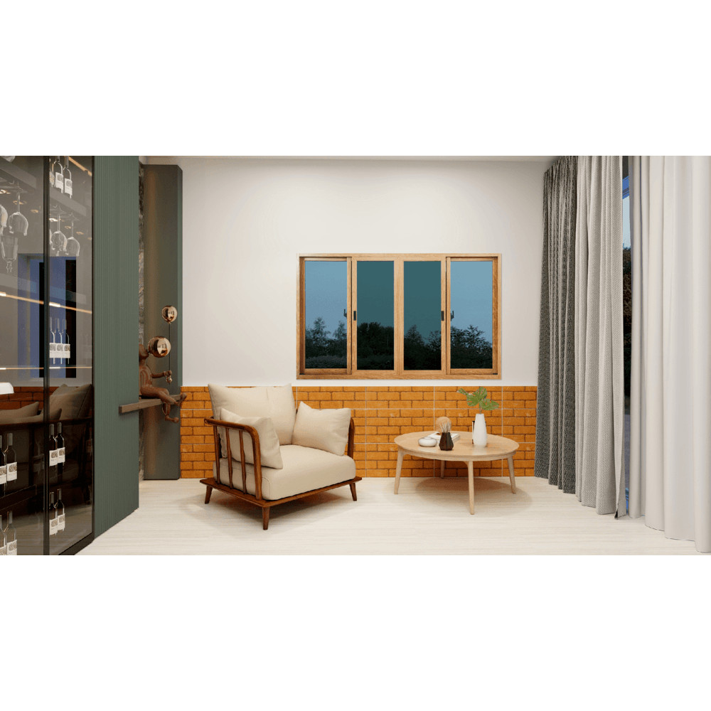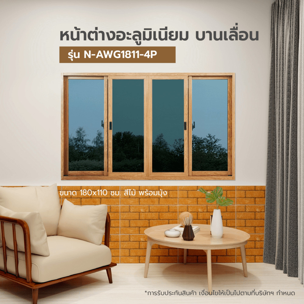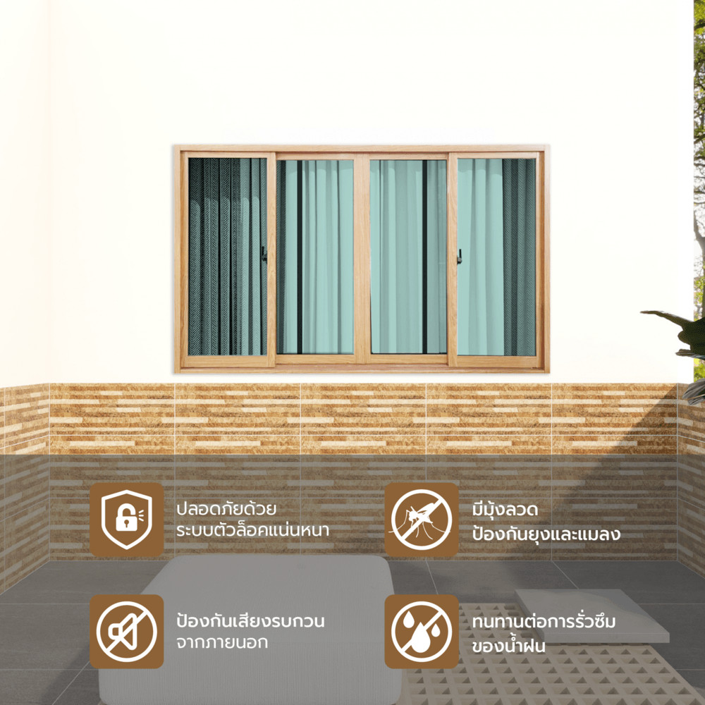 GlobalHouse WELLINGTAN หน้าต่างอลูมิเนียมบานเลื่อน N-AWG1811-4P 180x110CM สีไม้ พร้อมมุ้ง สินค้าของแท้คุณภาพดี