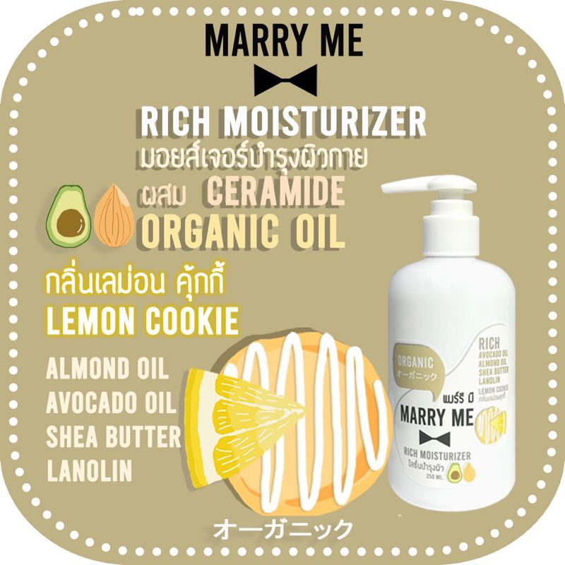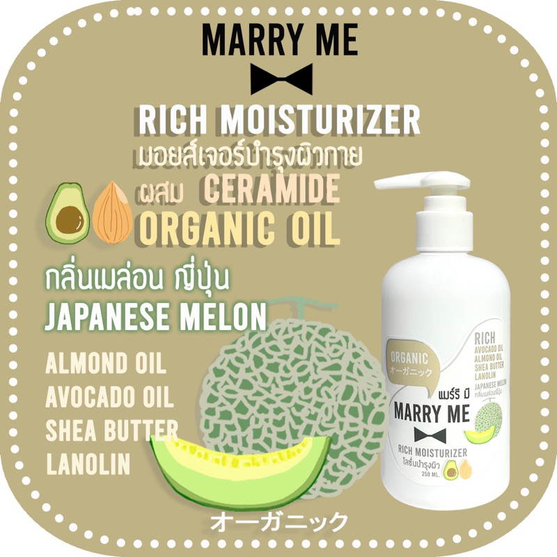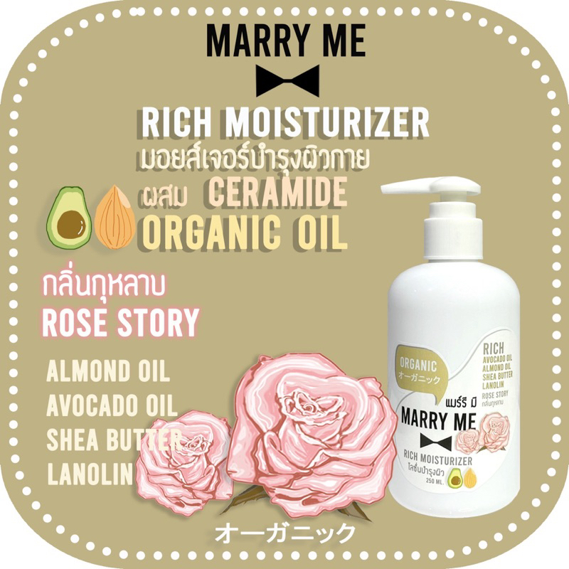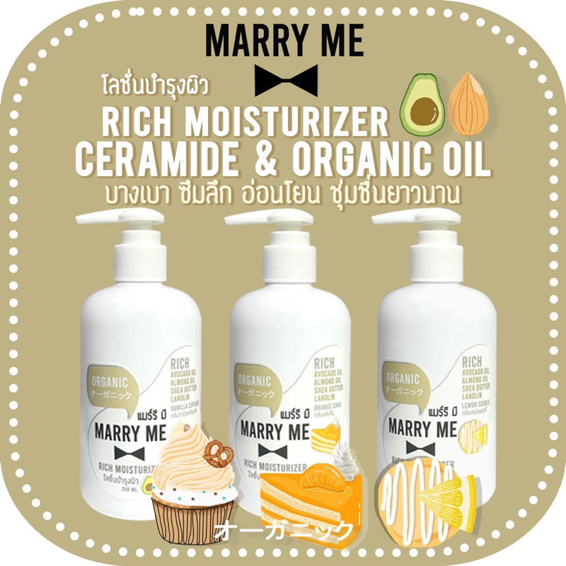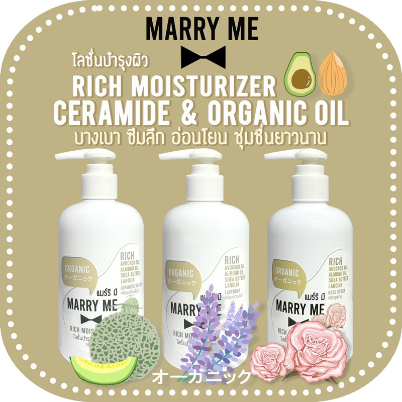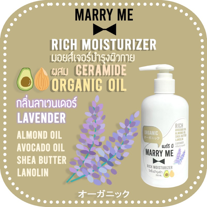Organic Lotion - RICH MOISTURIZER ลดอายุผิวด้วย Niacinamide, Avocado oil, Almond oil MARRY ME แมร์รี มี