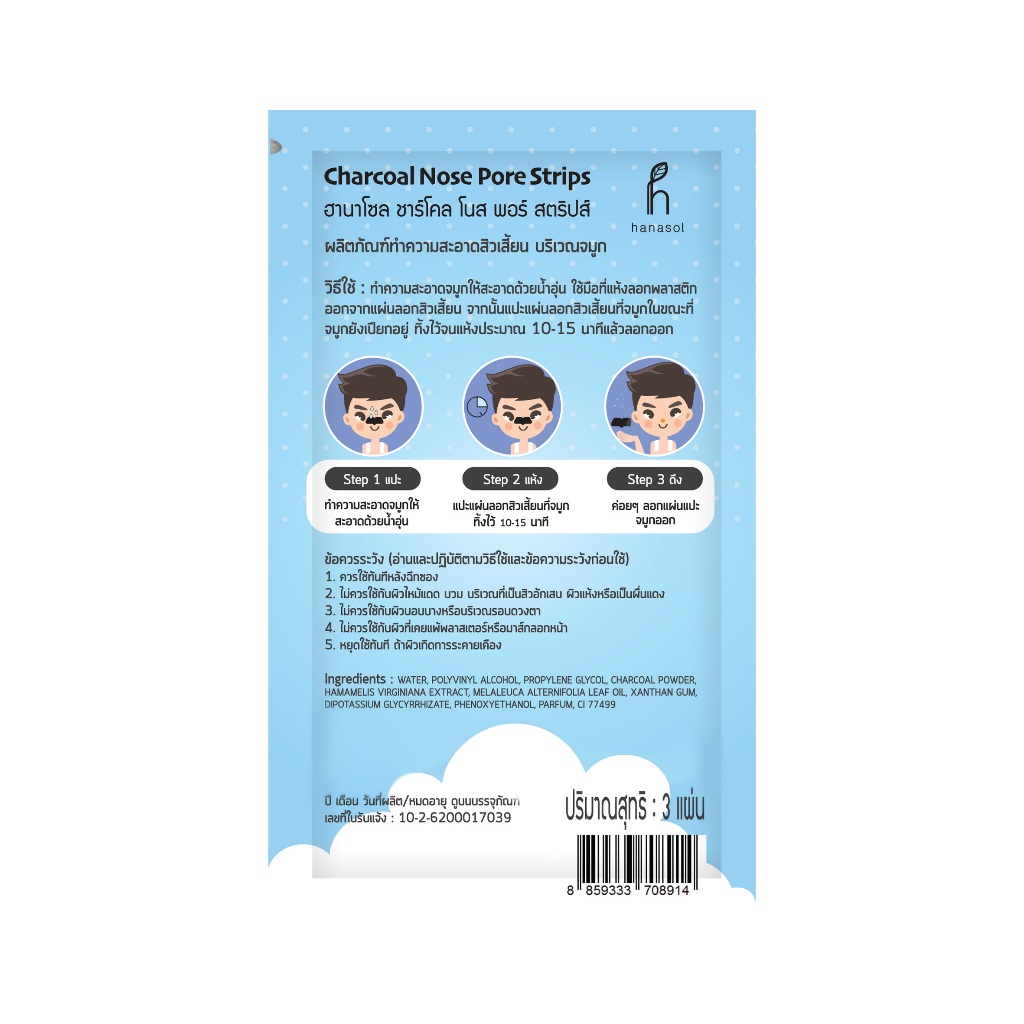 Hanasol Charcoal Mose pore Sctrips ฮานาโซล ชารโคล โนส แฮร์ สตริปส์ แผ่นลอกสิวเสี้ยน