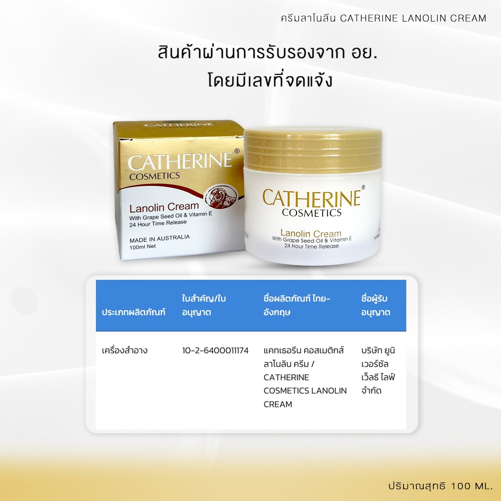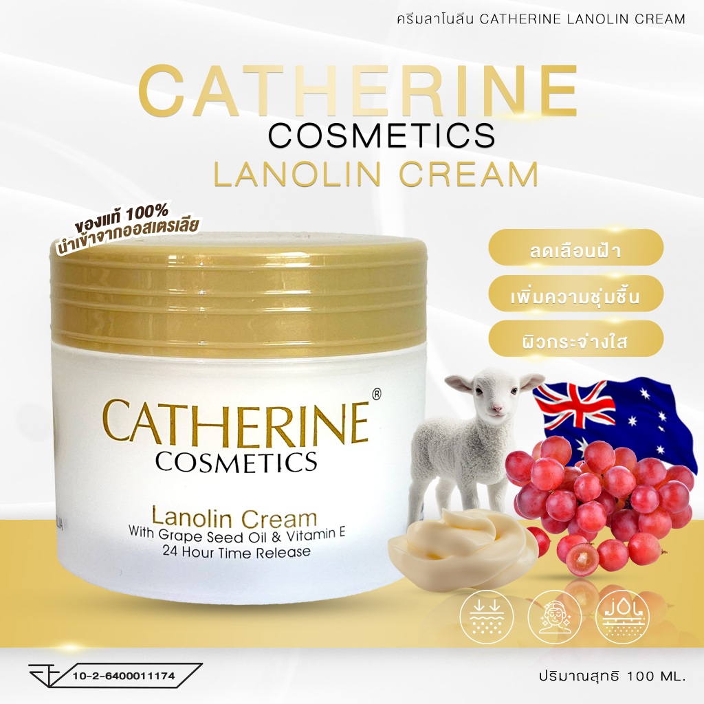 ครีมรกแกะ ลาโนลีน Catherine Lanolin Cream (100 ml) ของแท้ 100% นำเข้าจากออสเตรเลีย (แก้ปัญหาฝ้า)