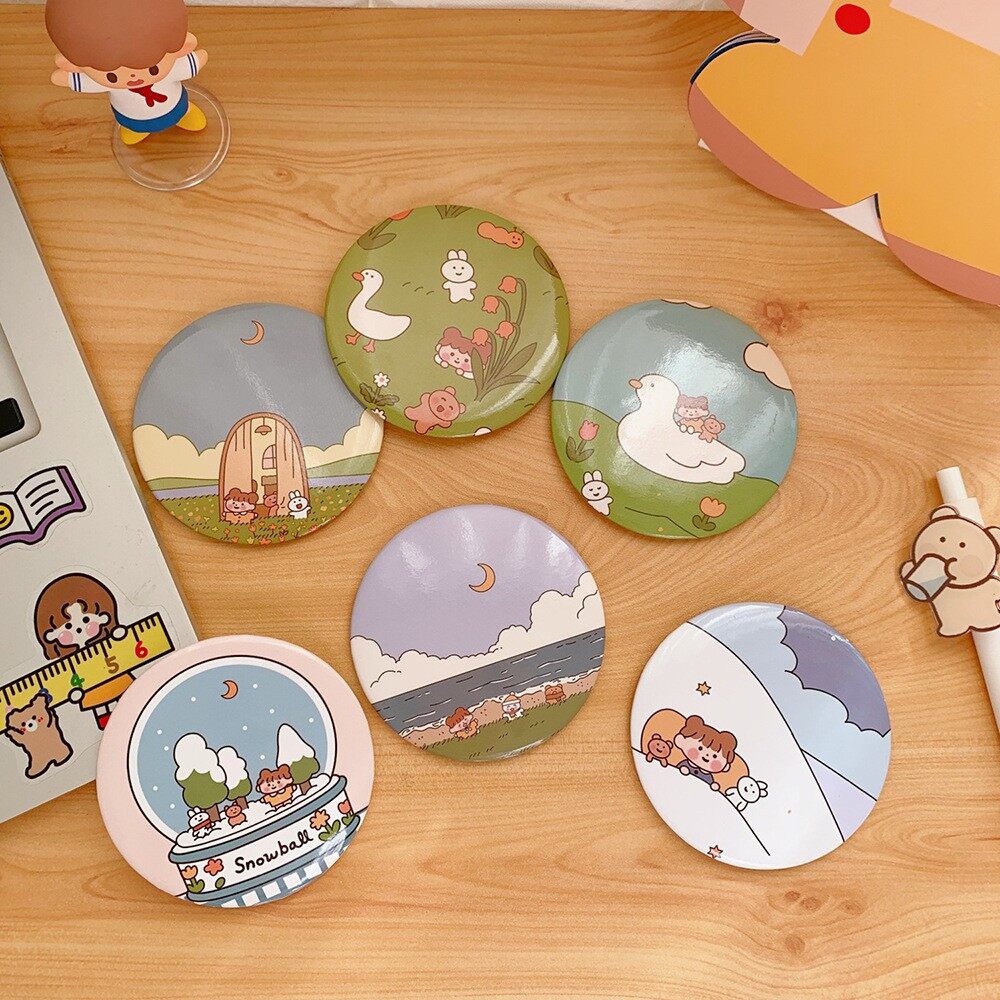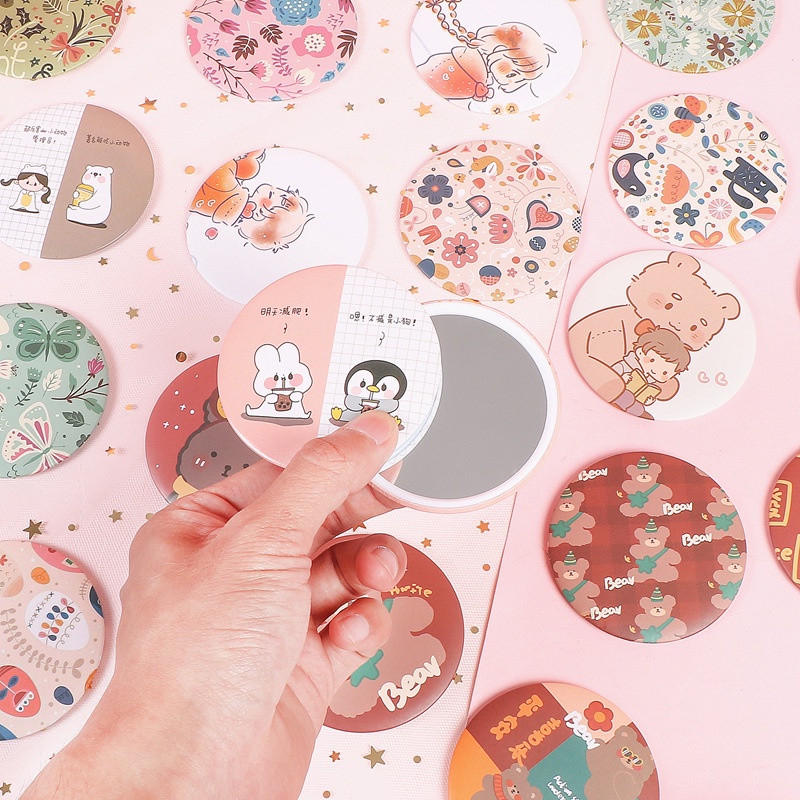 กระจกแบบพกพา กระจกทรงกลม ลายน่ารัก