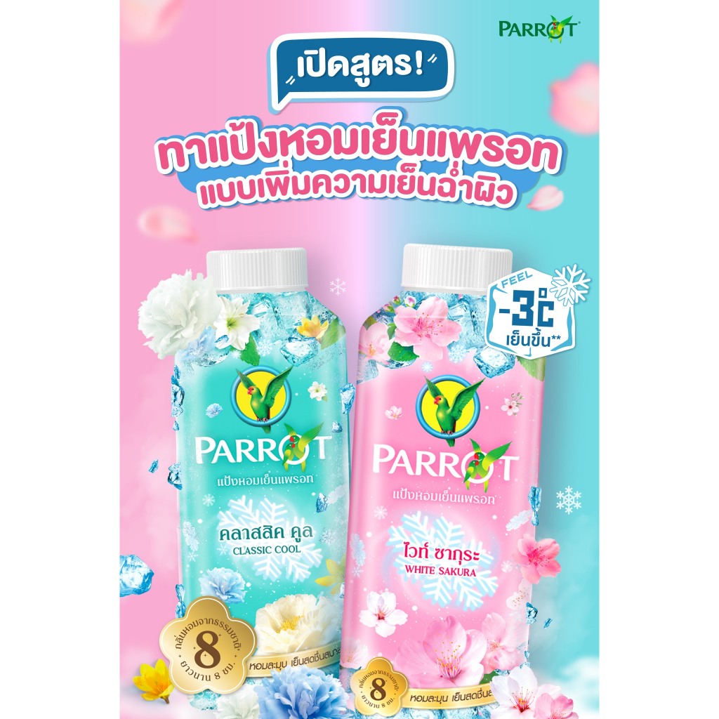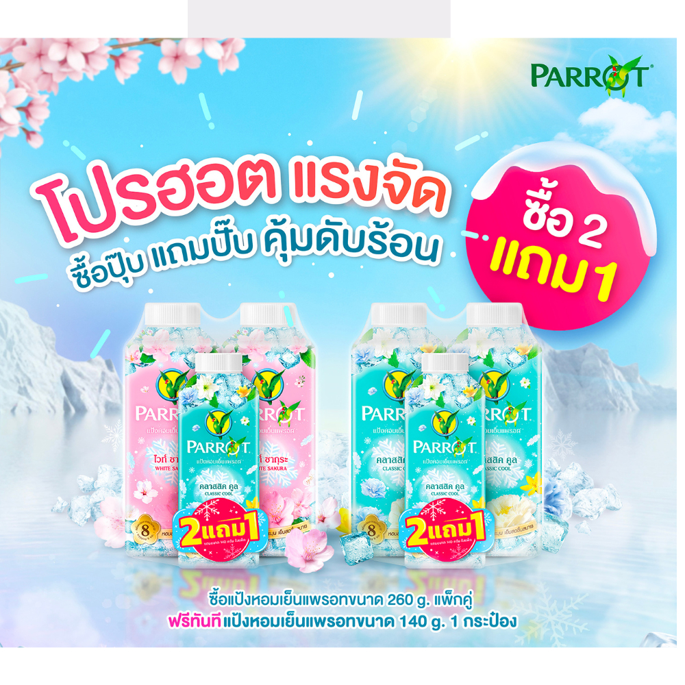 [2แถม1 แถม ขนาด140กรัม] Parrot Botanicals Perfume Cooling Powder 260g. พฤกษานกแก้ว แป้งหอมเย็น 260กรัม