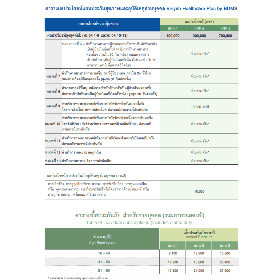 ประกันภัยสุขภาพและอุบัติเหตุViriyah Healthcare by BDMS"คุ้มครอง คุ้มค่า ราคาเพื่อคนไทย"เจ็บป่วย วิริยะ จ่าย BDMS รักษา