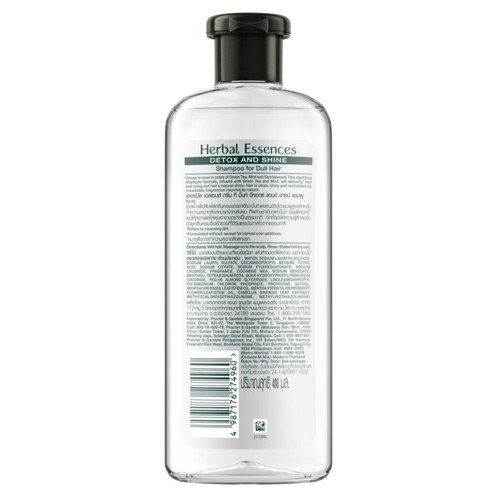 Herbal Essence เฮอร์บัล เอสเซนส์ แชมพู กรีน ที มิ้นท์ ดีทอกซ์ แอนด์ ชายน์ 400 มล.