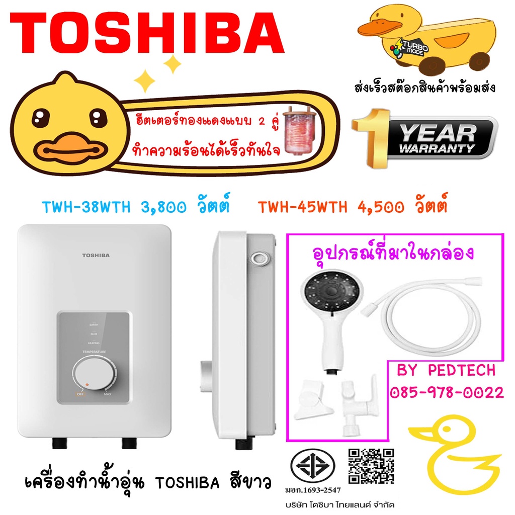 เครื่องทำน้ำอุ่น 3800 วัตต์ TOSHIBA ตัวเล็ก TWH-38WTH 3800 วัตต์ TWH-45WTH 4500 วัตต์ สีขาว LEDดำDSK45ES5KB4500W