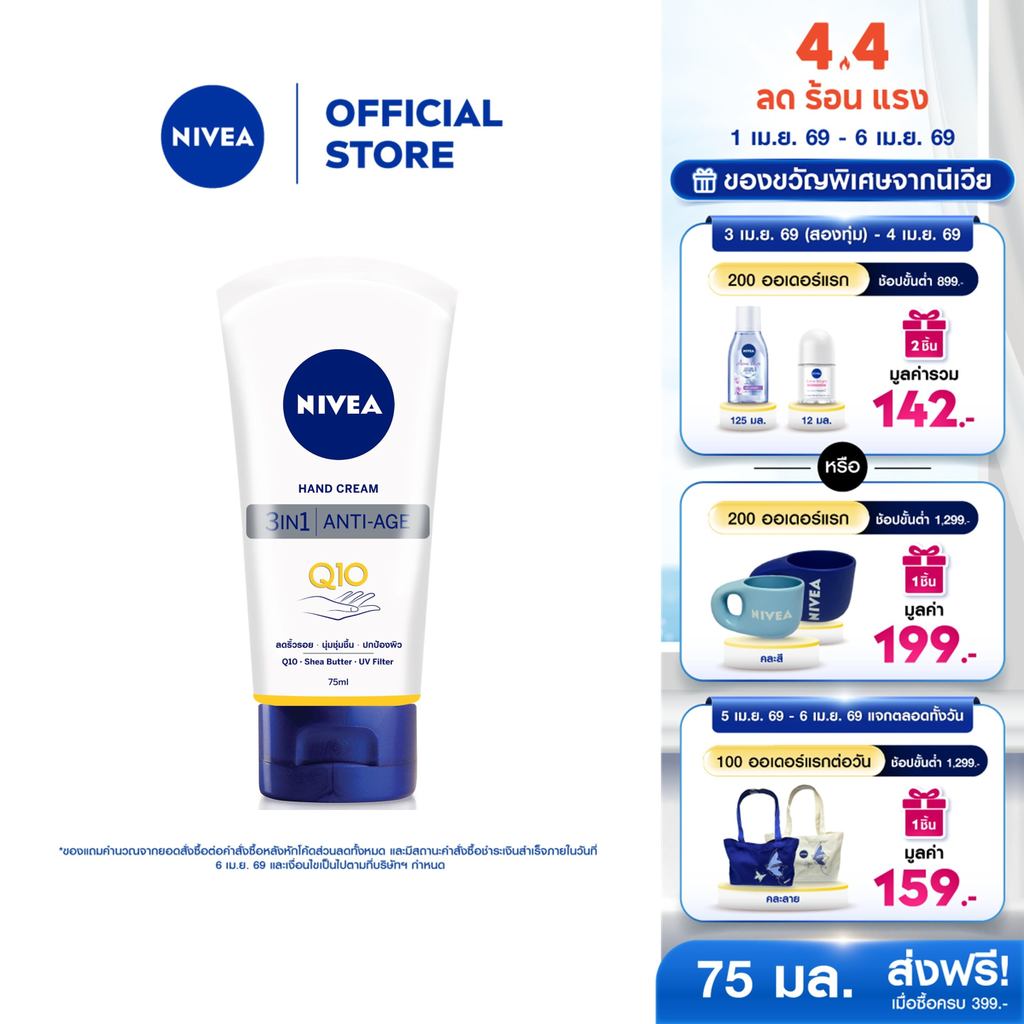 นีเวีย แฮนด์ ครีม คิวเทน 3in1 75 มล. NIVEA ครีมทามือ