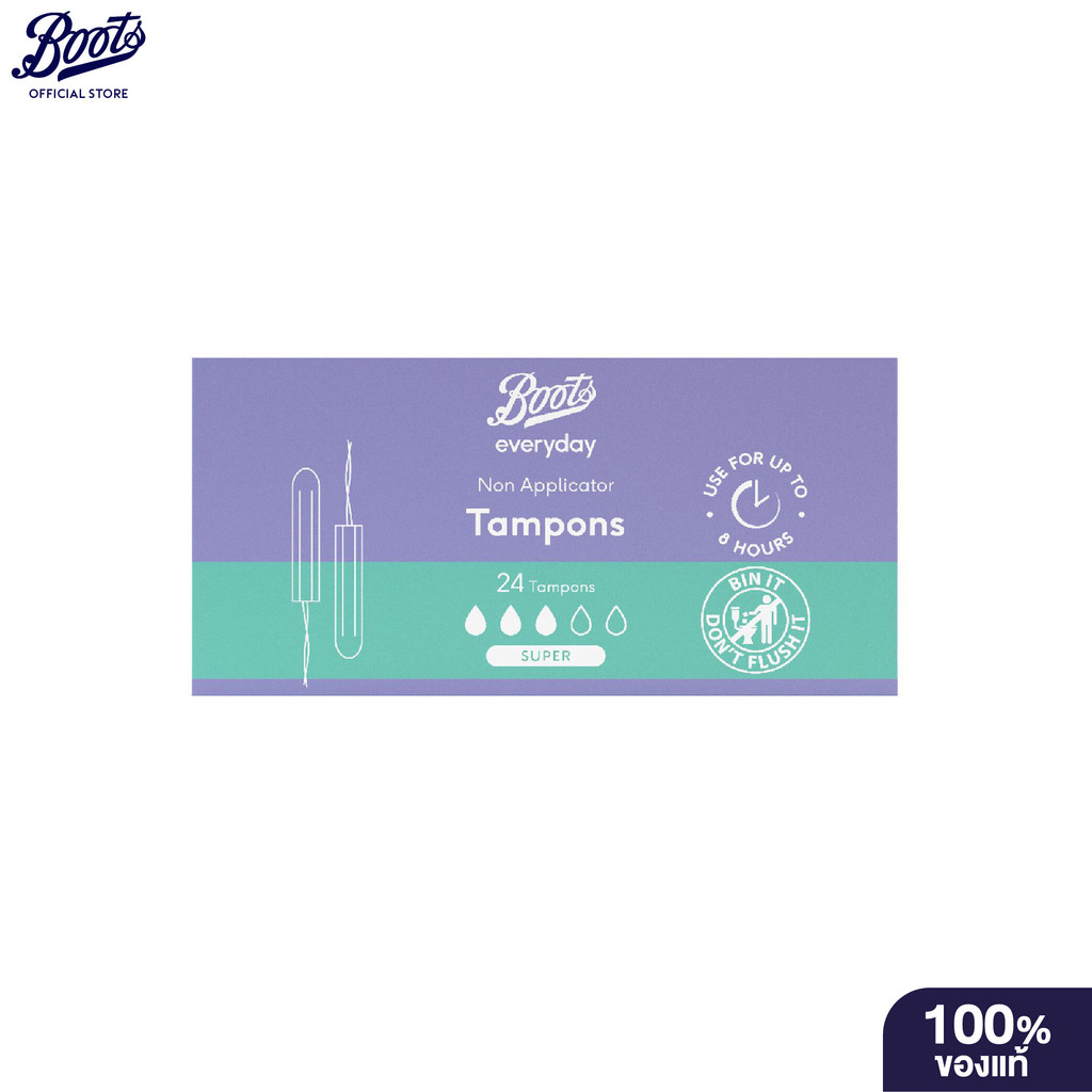 Boots Feminine Non Applicator Tampons Super 24S บู๊ทส์ เฟมินีน แทมปอนส์ - ซุปเปอร์ 24 ชิ้น ผ้าอนามัยแบบสอด