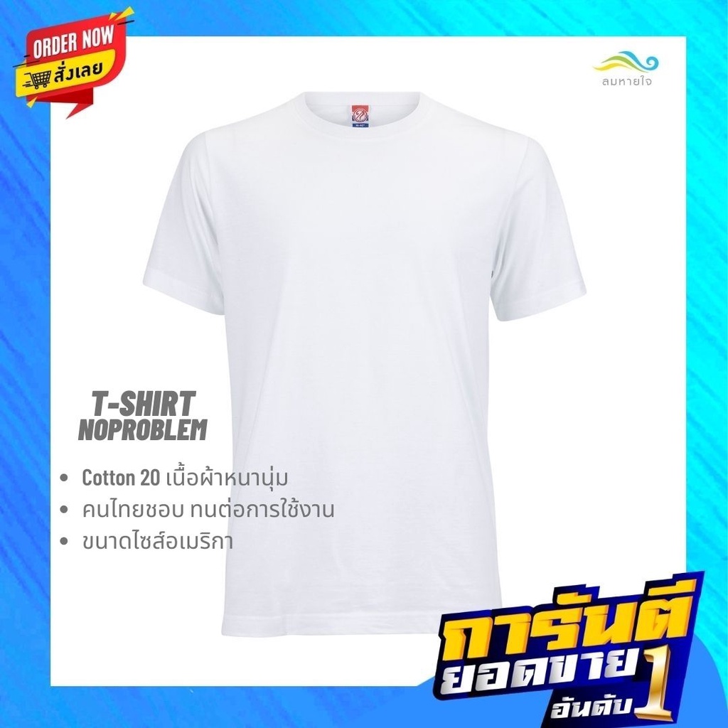 lomhaijaishop เสื้อยืดNoproblem ยอดขาย No.1 รับประกัน ไม่ย้วย ไม่ยืด ผ้านุ่ม เสื้อยืด สีพื้น เสื้อยืดคอกลม สีขาว