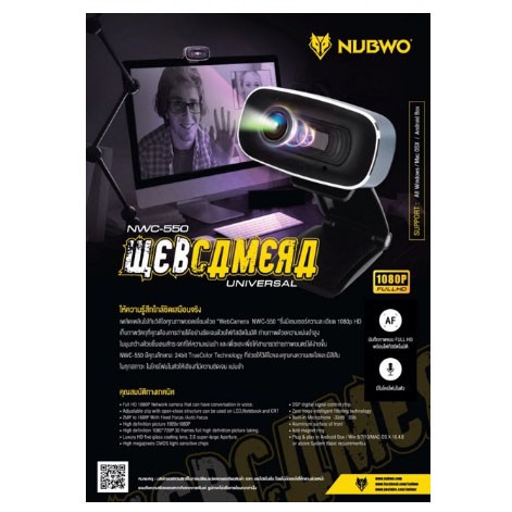 Nubwo Webcam NWC-550 1080P Full HD Webcam auto focus กล้องเว็บแคม ประกันศูนย์ 1 ปี