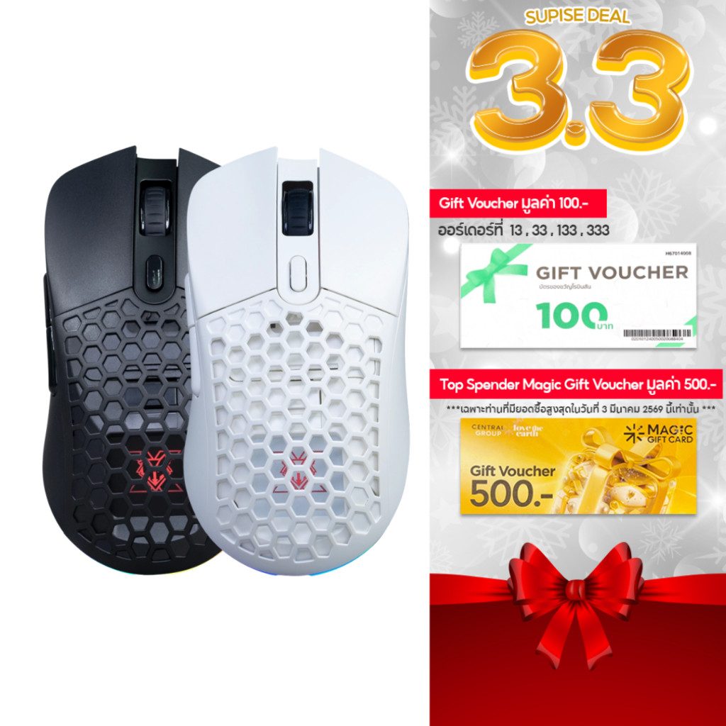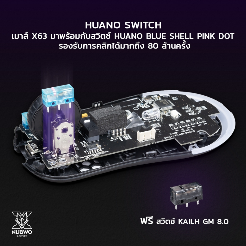 Nubwo TAURIEL WIRELESS & WIRED MACRO เมาส์เกมมิ่งไร้สาย เปลี่ยนสวิตช์และกรอบได้ มีไฟ RGB ปรับ DPI รุ่น X63 ประกัน 2 ปี