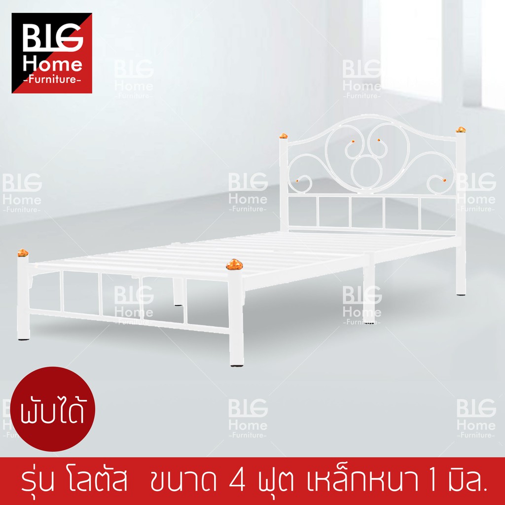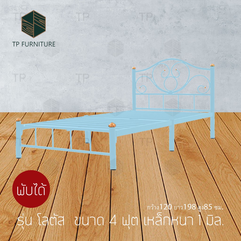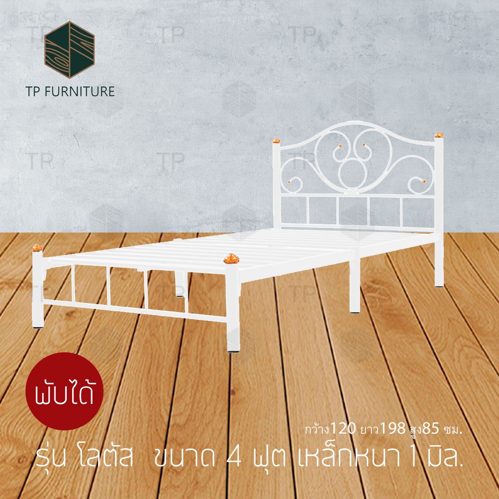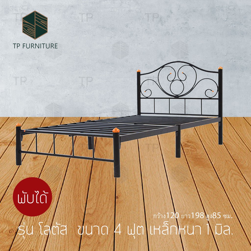 เตียงเหล็ก4ฟุต รุ่นโลตัส เหล็กหนา1มิล กว้าง120 ยาว198 สูง32 ซม.