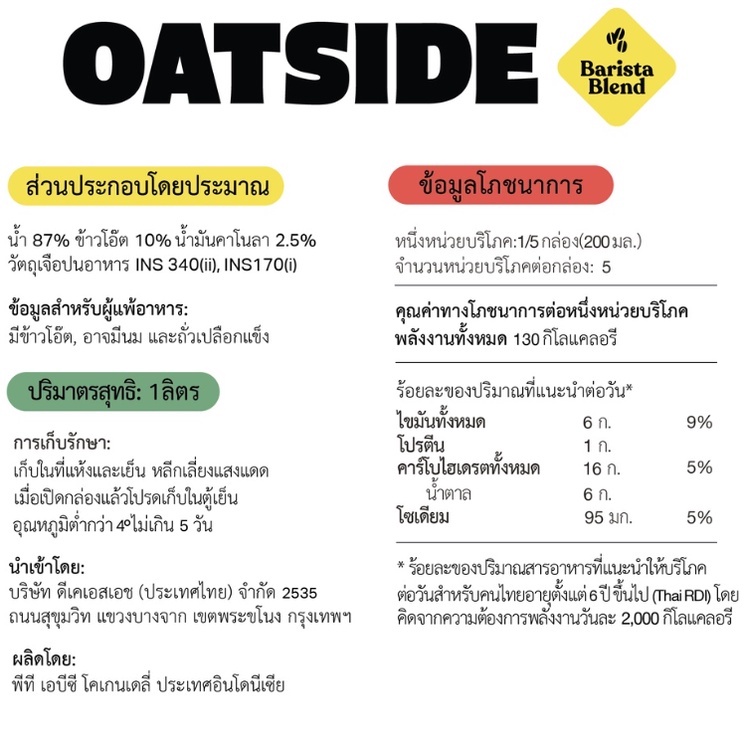 ( ส่งฟรี ) OATSIDE BARISTA BLEND นมข้าวโอ๊ต โอ๊ตไซด์ บาริสต้า เบลนด์ 6x1000ML