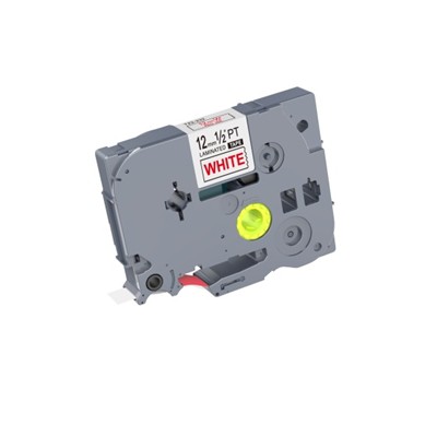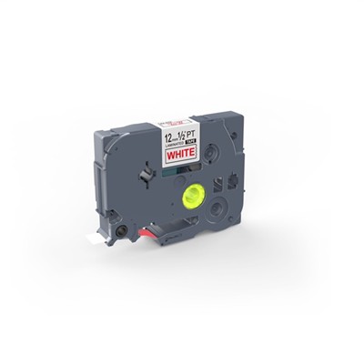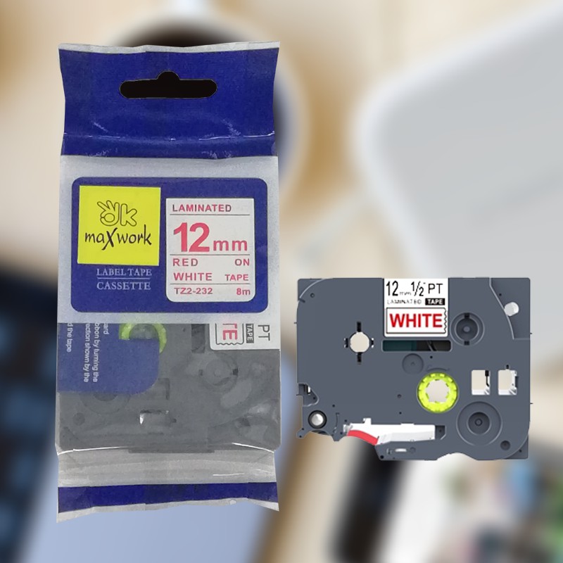 OK MAXWORK เทปพิมพ์อักษร 12 mm TZETZ2-232 พื้นสีขาว ตัวอักษรสีแดง