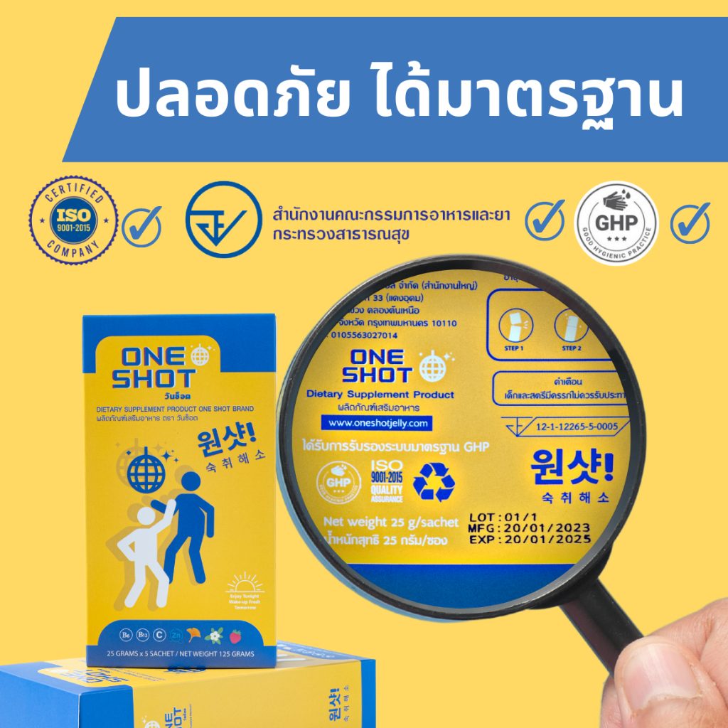 ONESHOT วันช็อต-เยลลี่ แก้แฮ้งค์ สูตรเกาหลี กินหลังดื่มเหล้า ตื่นมาไม่แฮงค์ [3 กล่อง][5 ซอง/กล่อง] Exp 31.01.25