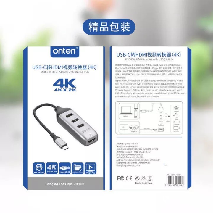 ONTEN OTN-95118H TYPE C TO HUB USB 3.0 : 3 PORT + HDMI 4K/2K