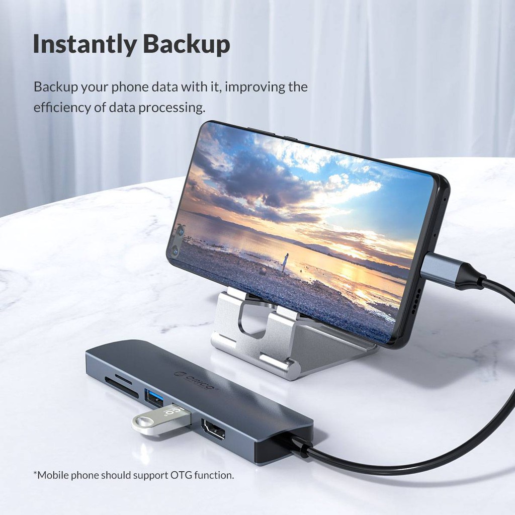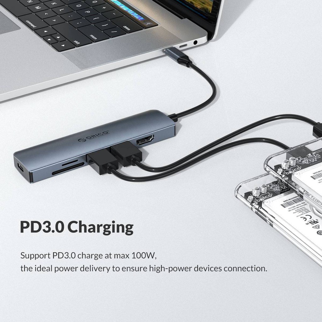 ORICO MC-U601P 6In1 USB C USB3.1 Hub HDMI 4K 30Hz,PD3.0,Card Read SD/TF3.0,USB3.0 Port