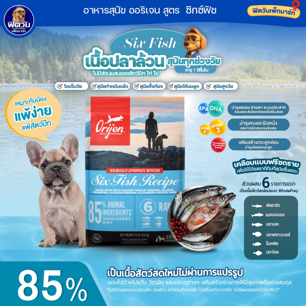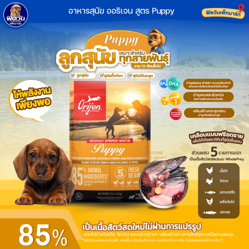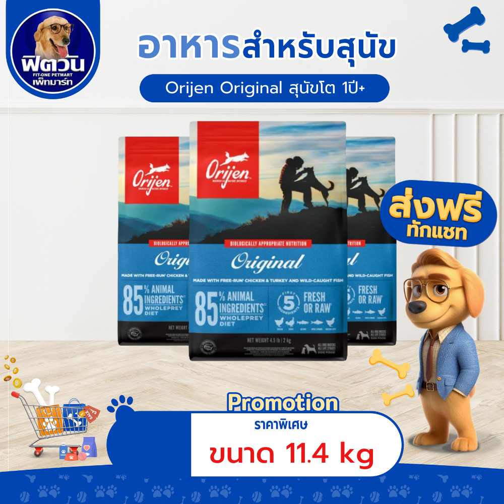 ORIJEN อาหารสุนัข 4 สูตร Puppy, Original, Six Fish, Fit&Trim 11.4 กก.{อาหารสุนัขเม็ด}