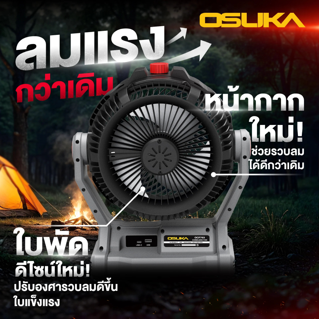 OSUKA พัดลมไร้สาย 9 นิ้ว 20V รุ่น OCF762 พ่นละอองน้ำได้ รุ่น OCF763 พัดลมแคมป์ พัดลมแบต พัดลมพกพา