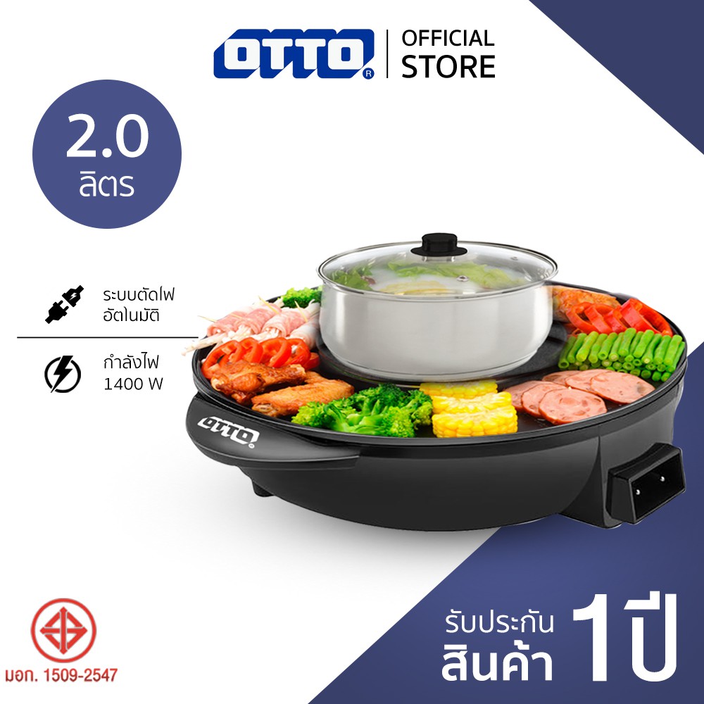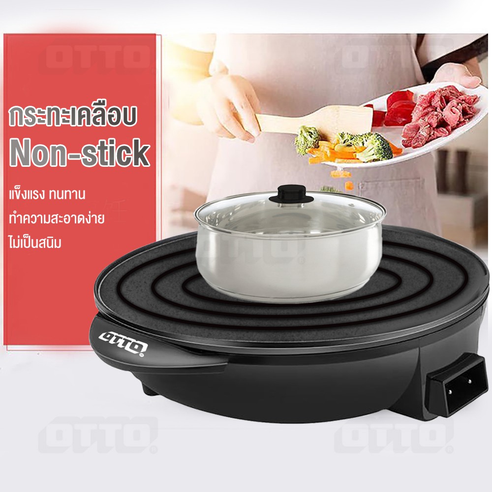 OTTO CENTER หม้อสุกี้ หม้อสุกี้ไฟฟ้า หม้อสุกี้บาร์บีคิว เตาย่าง กระทะปิ้งย่าง เคลือบเทปล่อน ขนาด 2L รุ่น PG-155