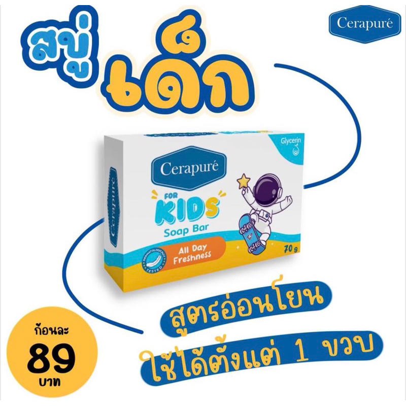 Cerapure Soap Bar for Kids สบู่เด็กเซราเพียวเร่ สูตรอ่อนโยน ขนาด 70 กรัม พร้อมส่ง!!